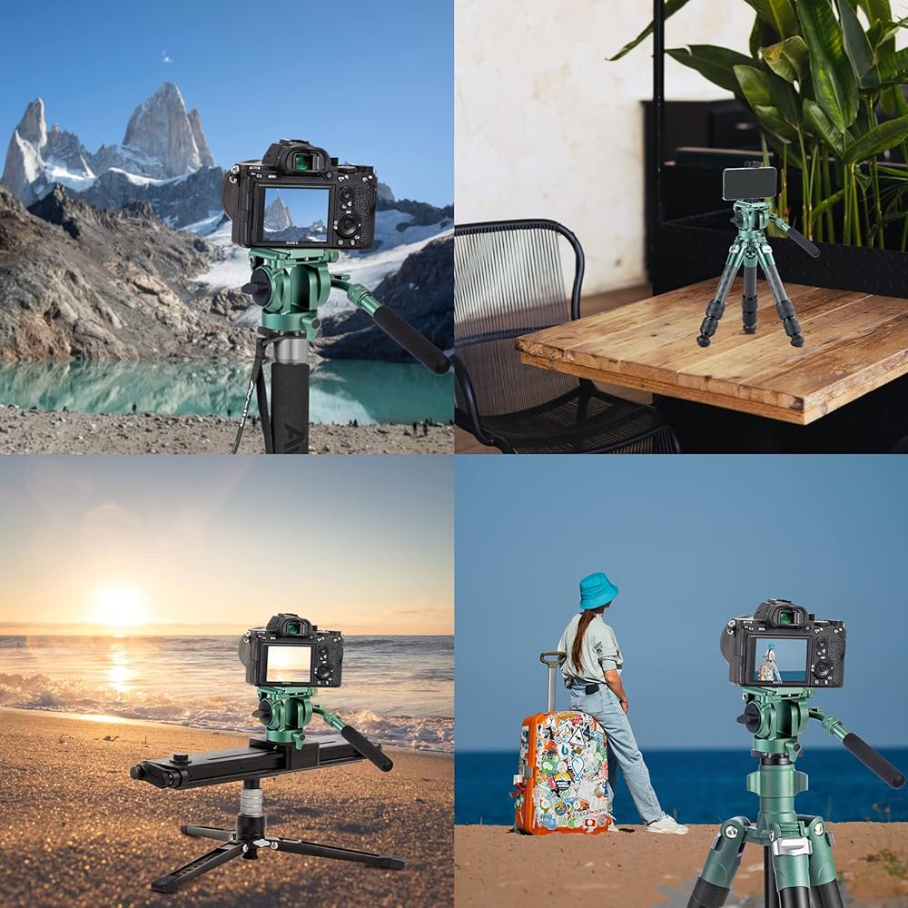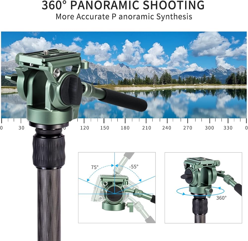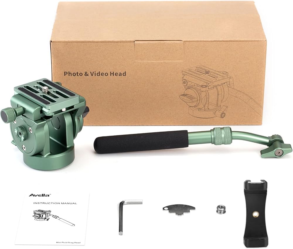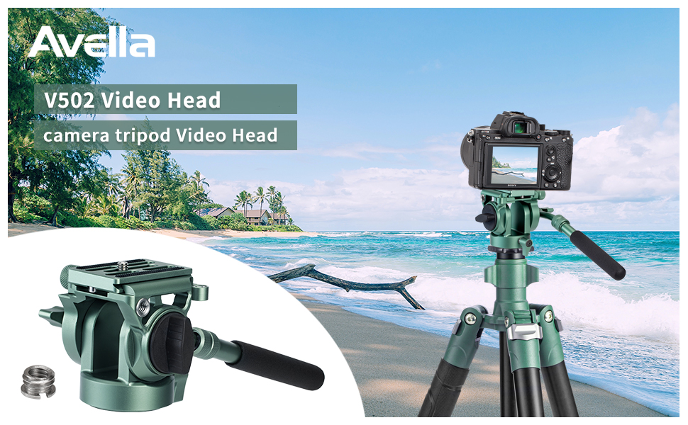 رأس فيديو Avella، رأس حامل ثلاثي مع لوحة إطلاق سريعة لـ Arca Swiss ورافعة قابلة للتعديل، لكاميرا Canon Nikon Sony Olympus Panasonic DSLR المدمجة - V502 Green