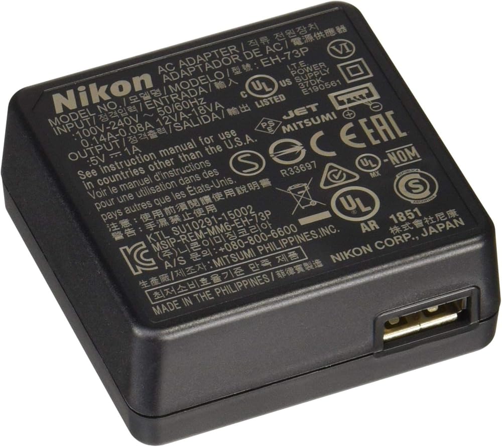 محول طاقة تيار متردد للشحن NIK0N EH-73P لكاميرات NIK0N DL وCOOLPIX مختارة (يتضمن كابل USB UC-E21)