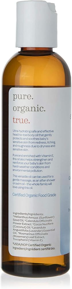 A rich gentle blend of skin soothing oils infused with Calendula to calm, moisturize and nourish your baby's sensitive and delicate skin. This delicate and versatile oil can also be used for a gentle massage, to help soothe cradle cap, or as an after swim or bath oil. For babies with sensitive skin, this perfect oil is will help keep your baby's skin stay moisturized and replenished throughout the day, and is perfect protective shield to layer under Sensitive Skin Organic Face & Body Lotion during very dry and harsh winter months.