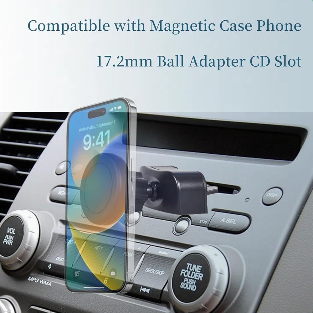 Epronic CD Slot Car Phone Holder Mount for Car Magnetic Mount Compatible with Case iPhone 15/14/13/12 Pro Max Plus Mini Smartphone 17.2mm Ball Adapter CD Slot for Phone Mount Holder