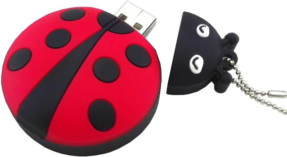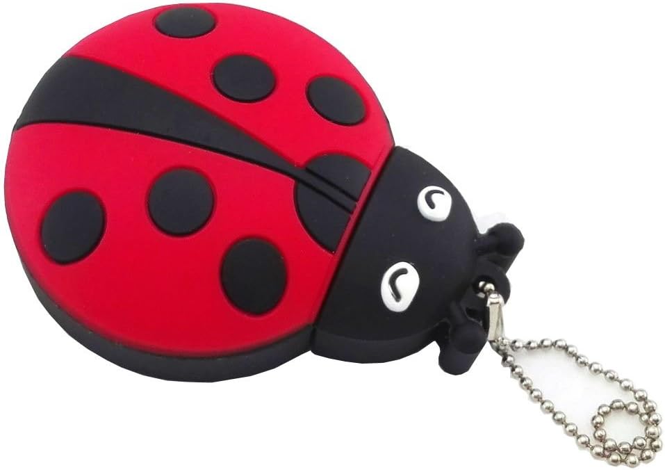 Novelty 16GB Red Pendrive Ladybug Insect USB Flash Drive Memory Thumb Stick, Good Gift Idea, Little Chain included as Pendant