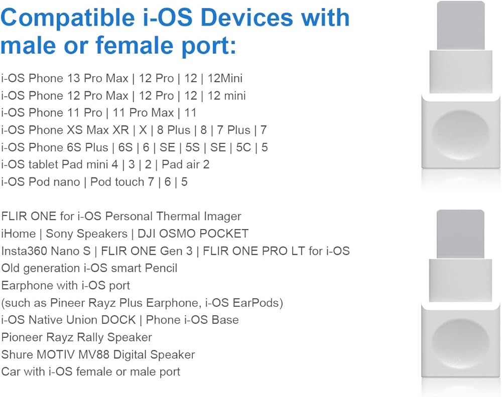 WIDELY USED - Perfectly working for i-Home, Bose, S-ony Speakers, FLIR ONE Thermal Imager, Native Union DOCK, Pineer Rayz Plus Earphone , DJI OSMO POCKET and Pioneer Rayz Rally Speaker.