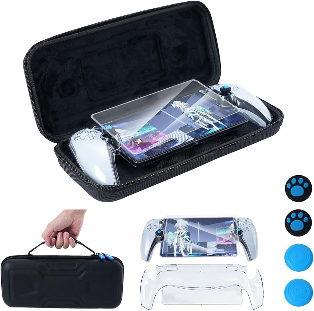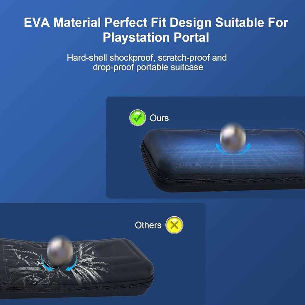 Travel Carrying Case for PS Portal: Specially designed for Playstation Portal Remote Player. EVA hard carrying case is convenient for storage and travel. The clear protective case with accurate incision, easy access to all buttons.Easy to assemble and separate.Very suitable for indoor or outdoor travel.