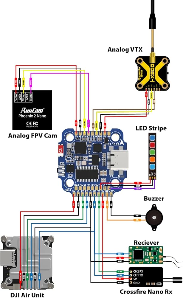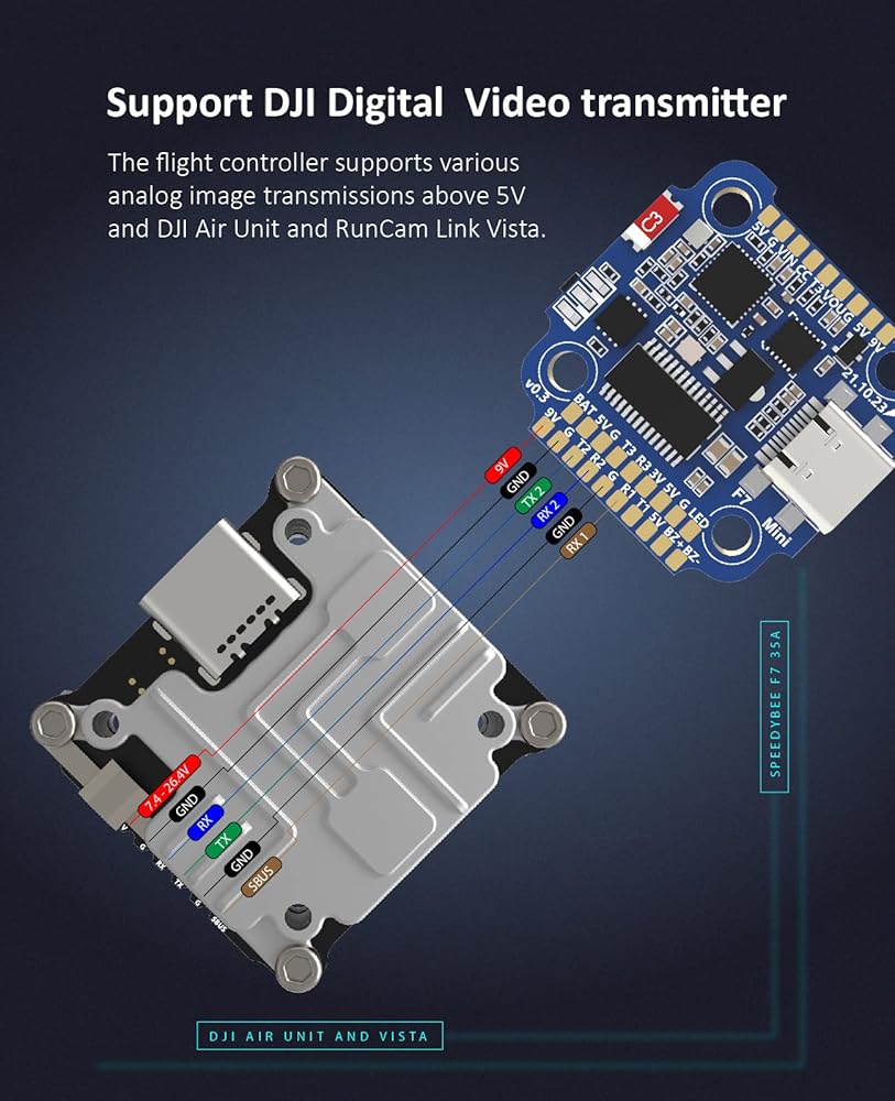 يدعم نظام Fpv الرقمي والتناظري - تدعم وحدة التحكم في الطيران العديد من عمليات نقل الصور التناظرية فوق 5 فولت كما أنها متوافقة مع وحدة DJI Air Unit وCaddx Vista.
