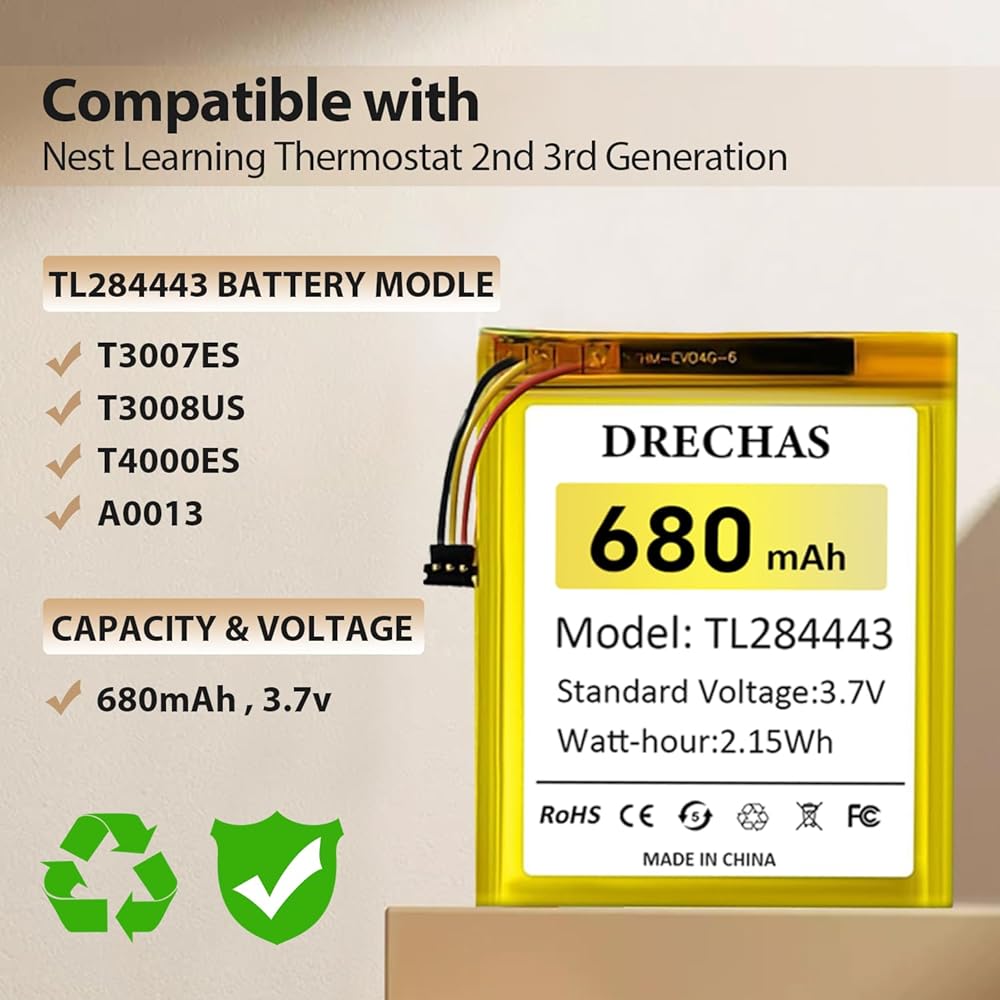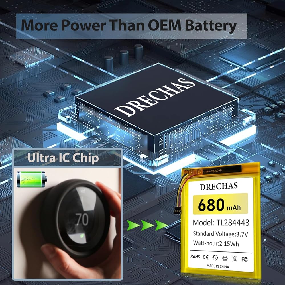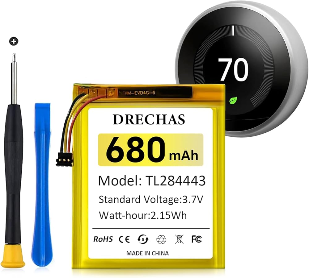 [680mAh]Battery for TL284443 , 2024 New Upgraded High Capacity Li-Polymer Replacement Battery for Nest Learning Thermostat 2nd 3rd Generation, T3007ES, T3008US, T4000ES, A0013 with Repair Tools