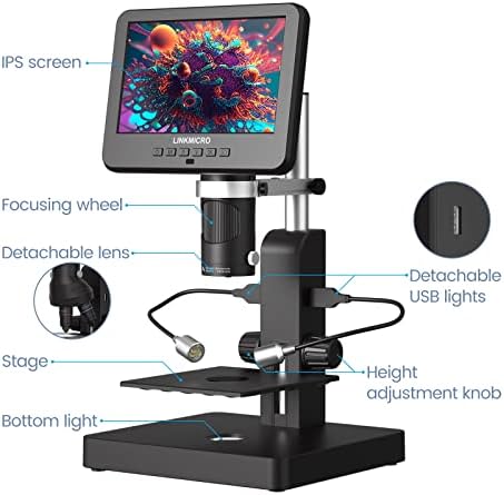 【شاشة IPS LCD أكبر 7 بوصة 】 شاشة IPS LCD أكبر 1080P 7 بوصة، تكبير يصل إلى 1000X، يُظهر المجهر الرقمي LM246 تفاصيل رائعة ودقيقة مما يجعل ملاحظتك أكثر سهولة.