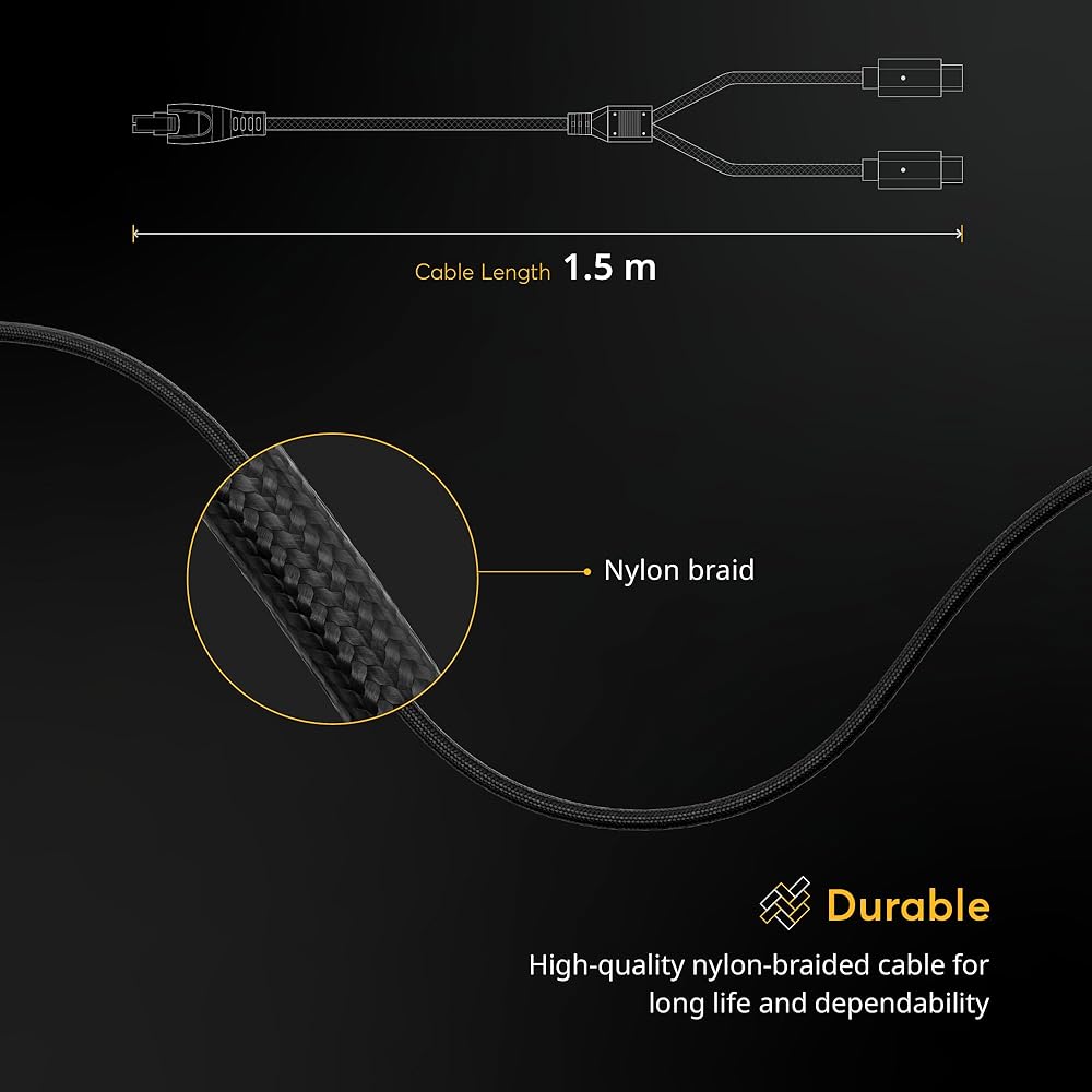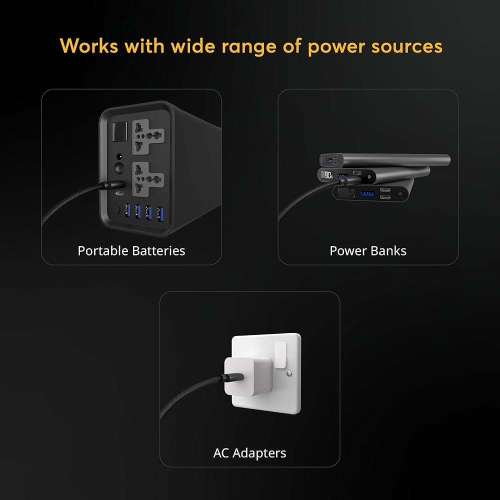 Safe and Secure Connection: Each USB-C port on the power cable comes with a 3A current protection mechanism, complemented by the safety features of the power banks themselves, offering comprehensive over-current, overheating, and short circuit protection