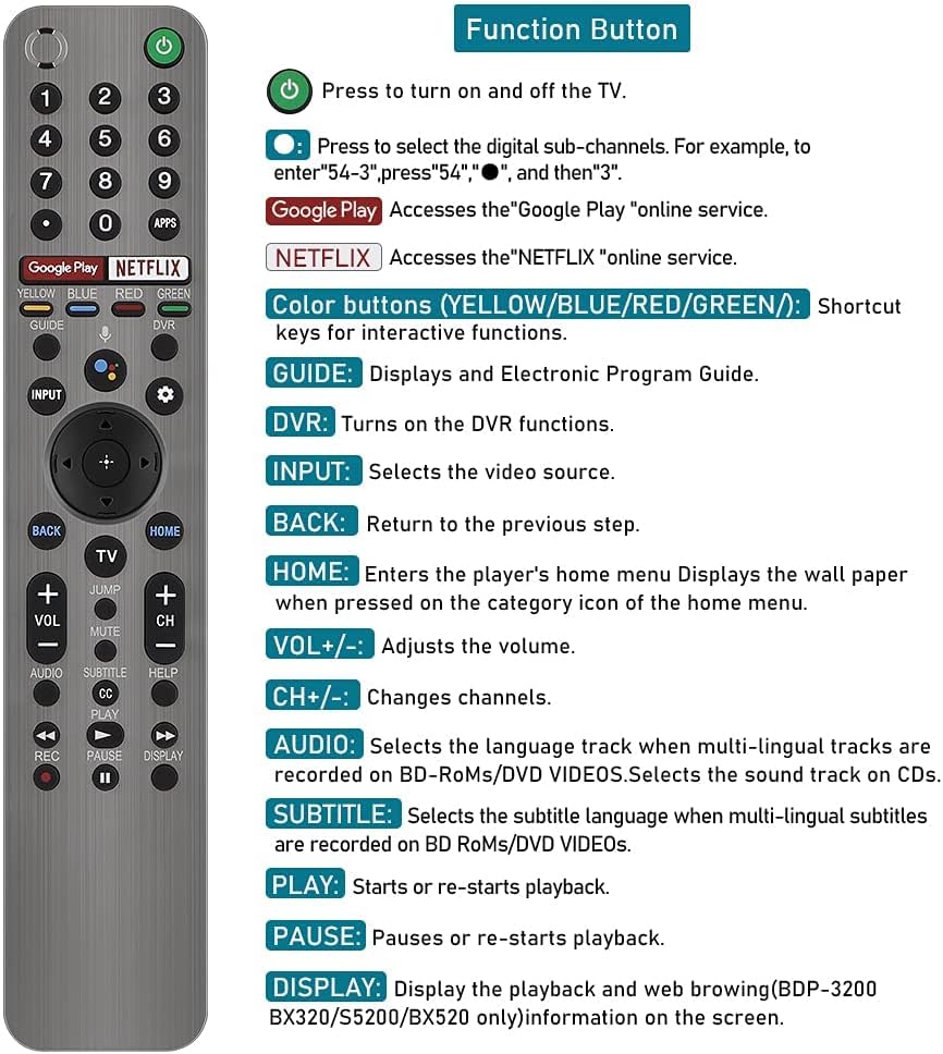 بديل CtrlTV لجهاز التحكم عن بعد Sony Smart Bravia Bluetooth وSony Bravia TV 4K Ultra HD، وجهاز التحكم عن بعد بميكروفون البحث الصوتي من Sony مع Netflix وGoogle Play.