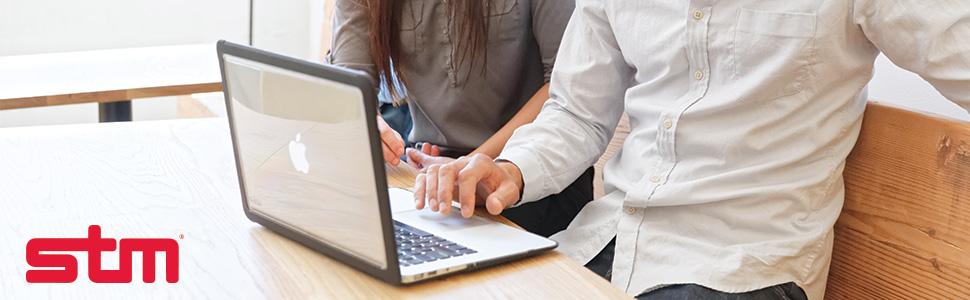 حافظة STM Dux لجهاز MacBook Air (13 بوصة) فائقة الحماية - موديلات M1 وRetina 2020/2018 (A1932/A2179/A2337) - غطاء كمبيوتر محمول شفاف ومتين تم اختباره بمواصفات Mil-Spec - أسود (stm-122-293MW-01) )