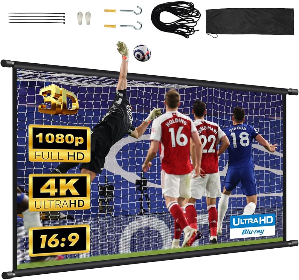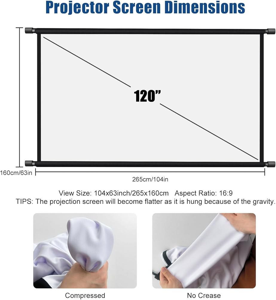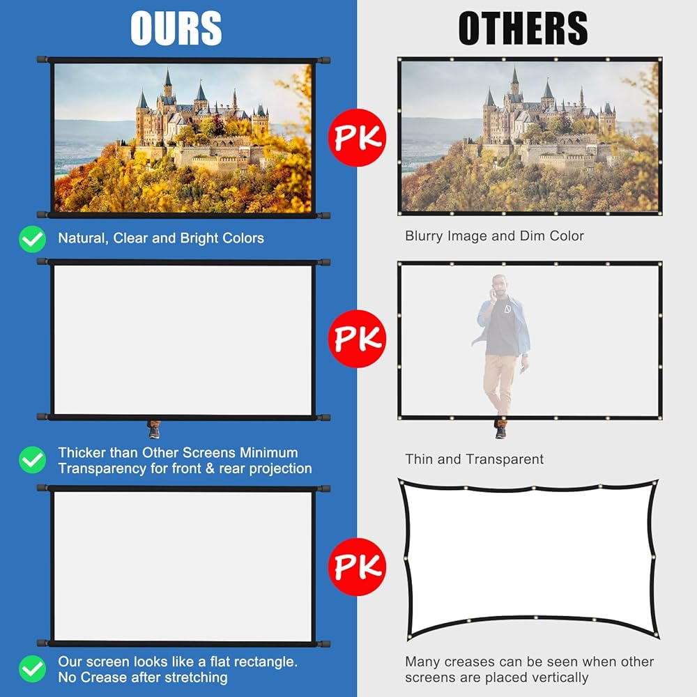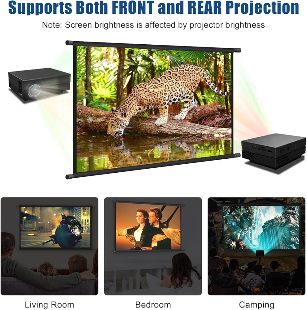 جودة عالية ومقاومة للماء: شاشة العرض مصنوعة من مادة البوليستر المصنوعة من ألياف الحليب المقاومة للتجاعيد ومقاومة للماء. رائعة كشاشة عرض خارجية مقاومة للماء، للحصول على صورة عالية الوضوح ومشبعة، مما يجعل تأثير الإسقاط أكثر ممتازًا والاستمتاع بليلة فيلم لطيفة مع الأصدقاء في الهواء الطلق.