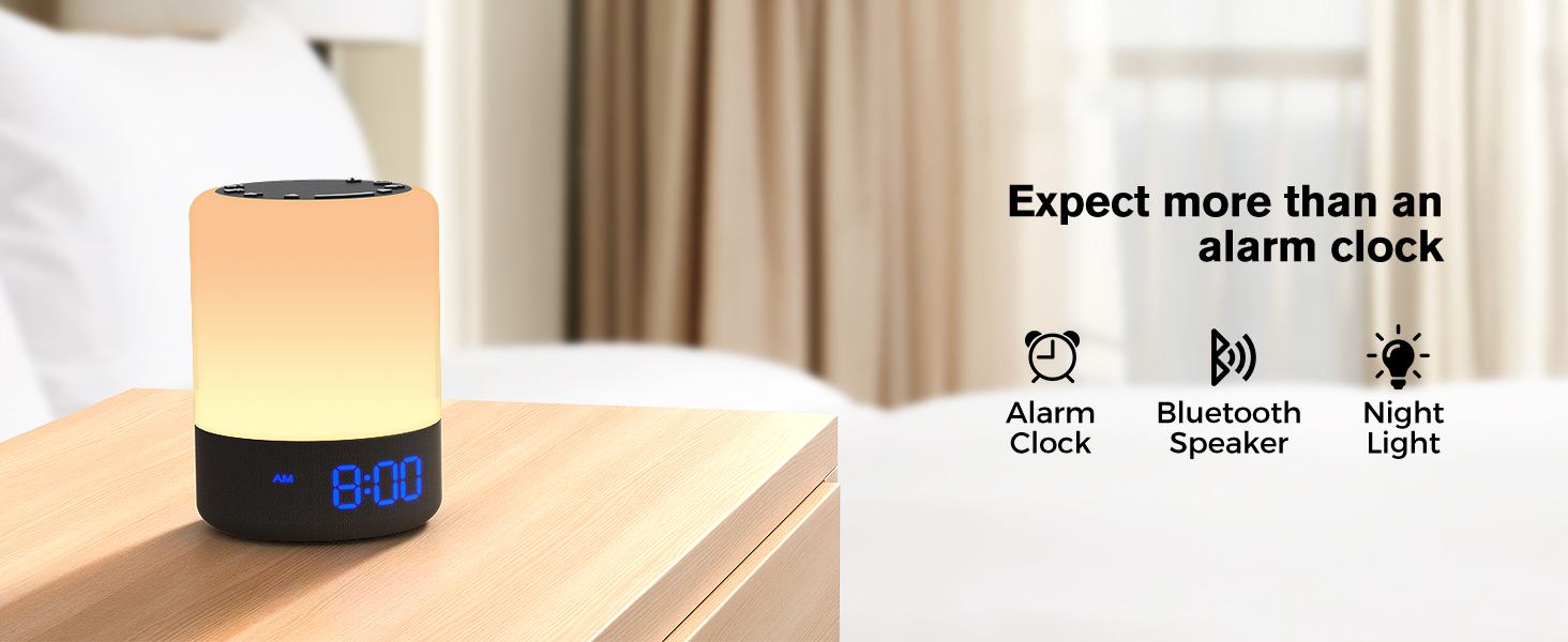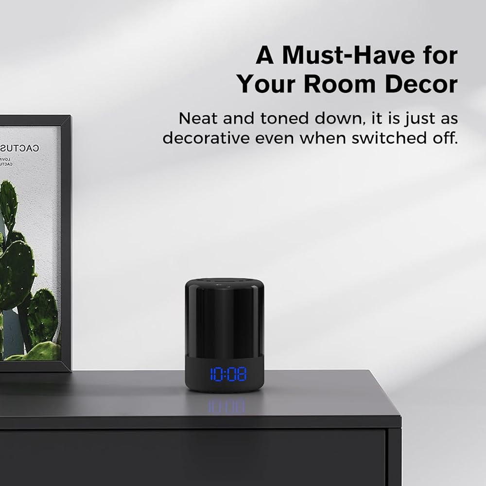 𝐀𝐥𝐚𝐫𝐦 𝐂𝐥𝐨𝐜𝐤: استيقظ بلطف مع 5 أصوات منبه مستوحاة من الطبيعة، بما في ذلك زقزقة الطيور وأمواج المحيط. عرض مفتاح التعتيم لسهولة القراءة أو إنشاء غرفة مظلمة ليلاً ونهارًا، مثالي للأفراد الحساسين للضوء.