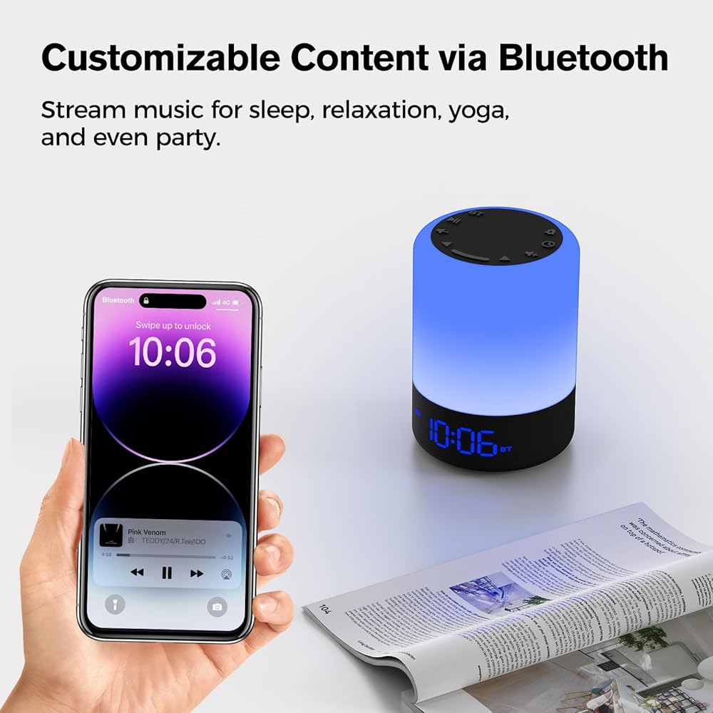 𝐁𝐥𝐮𝐞𝐭𝐨𝐨𝐭𝐡 𝐒𝐩𝐞𝐚𝐤𝐞𝐫: يتيح Bluetooth 5.0 المتقدم اتصالاً فوريًا وسلسًا يصل إلى 66 قدمًا. يمكنك الوصول بسهولة إلى الأغاني المفضلة وأصوات النوم والكتب الصوتية وموسيقى اليوغا وأصوات التأمل والمزيد.