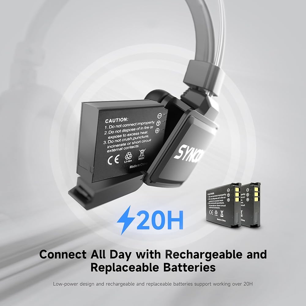 【Connect All Day With Rechargeable Batteries】Low-power design and powered by rechargeable and replaceable batteries, the wireless headset can work over 20H, while the 1050mAh replaceable battery feature allows you to swap in a fully charged backup. Stay connected and communicative throughout your day.