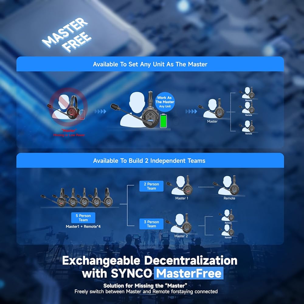 【Stable Long Distance Team Communication】Stay effortlessly connected in teamwork communication with Xtalk wireless intercom headset, featuring an impressive range of R350m/1148ft(LOS), and φ700m/2296ft (LOS) while both remotes are connected to the master. No need to walk far to re-connect. This wireless headset is perfectly suited for prestigious occasions, such as church services, TV shows, filmmaking, live performances, and more.
