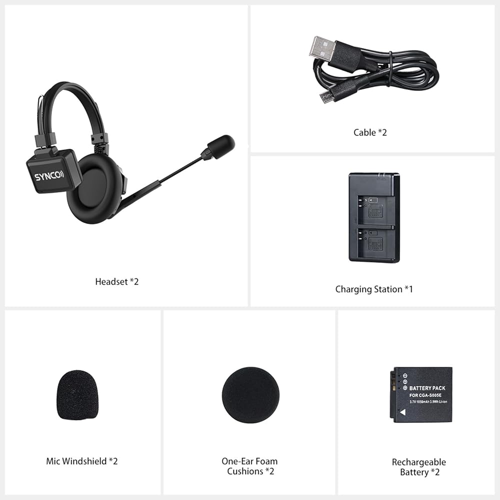 SYNCO Xtalk X2 نظام سماعة رأس اتصال داخلي لاسلكي لشخصين 2.4G سماعة رأس لاسلكية مع ميكروفون مدمج بطارية 350M / 1148ft نقل 3.5 ملم مراقبة في الوقت الحقيقي لصناعة الأفلام البث المباشر