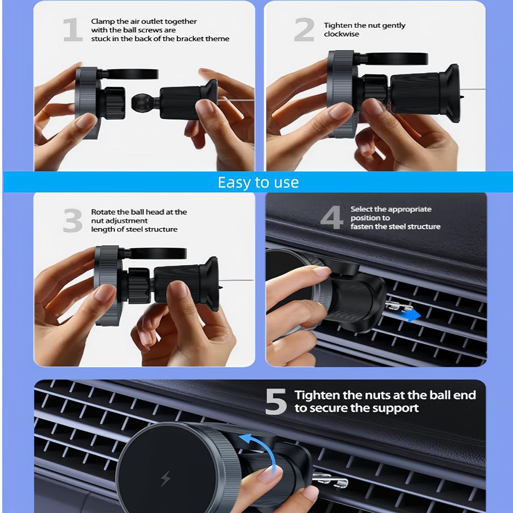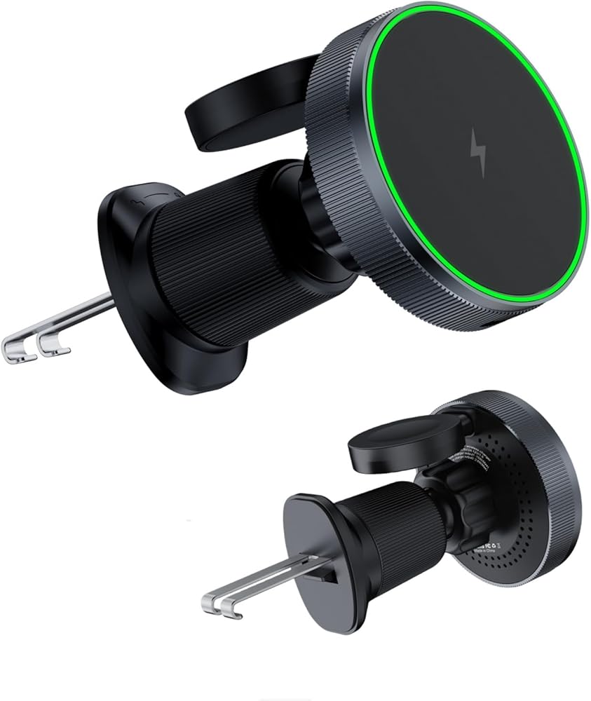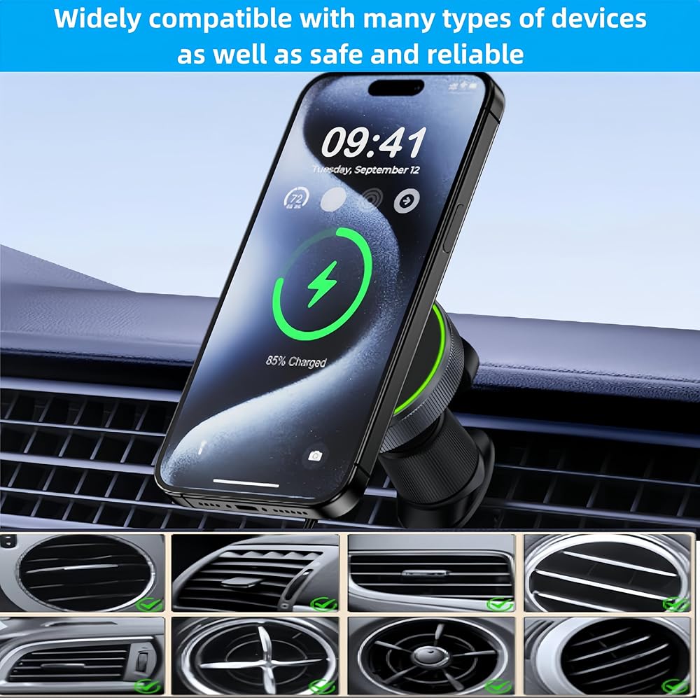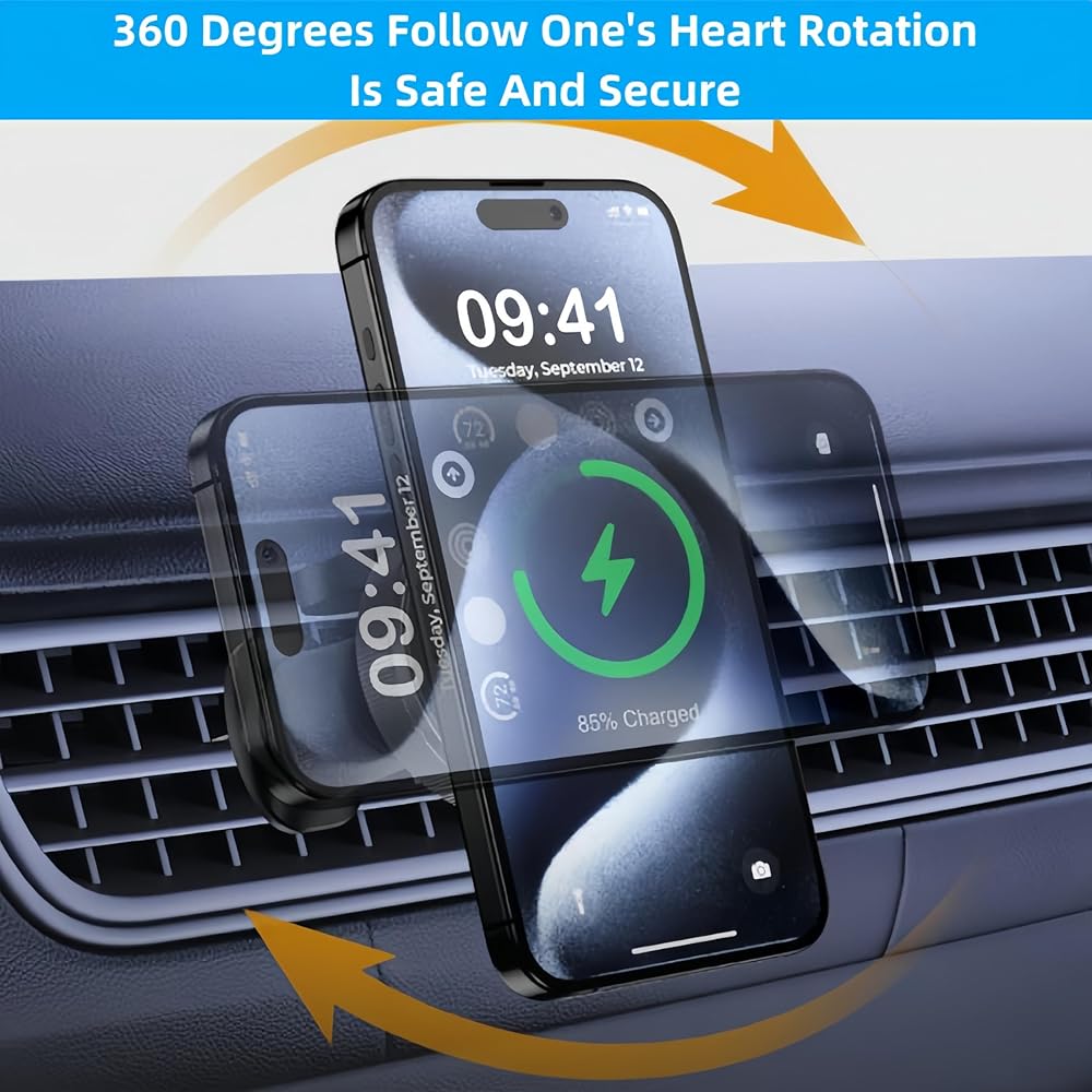 • 【360° Flexible Viewing & Single-Hand Use】This wireless car charger features a superior ball joint allowing full 360-degree rotation, offering the ideal viewing angle for optimal comfort. Effortlessly position your phone for a safer, more laid-back driving experience. The mount's base is securely fastened to your car's air vent, ensuring stability no matter the degree of movement or rotation.