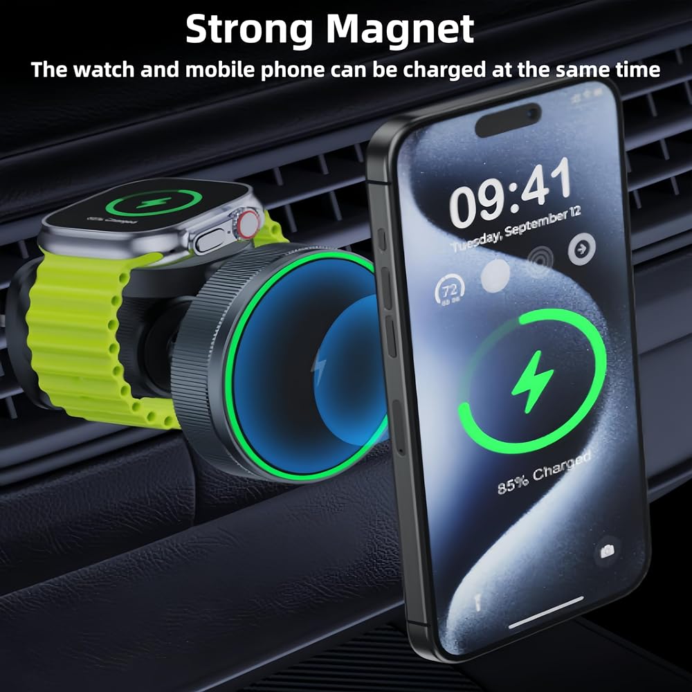Magnetic Wireless Car Charger, 360°Adjustable Magnetic Air Vent Mount Compatible,2 in 1 Compatible with iPhone 15/14/13/12 Pro Max Plus Mini and Apple Watch