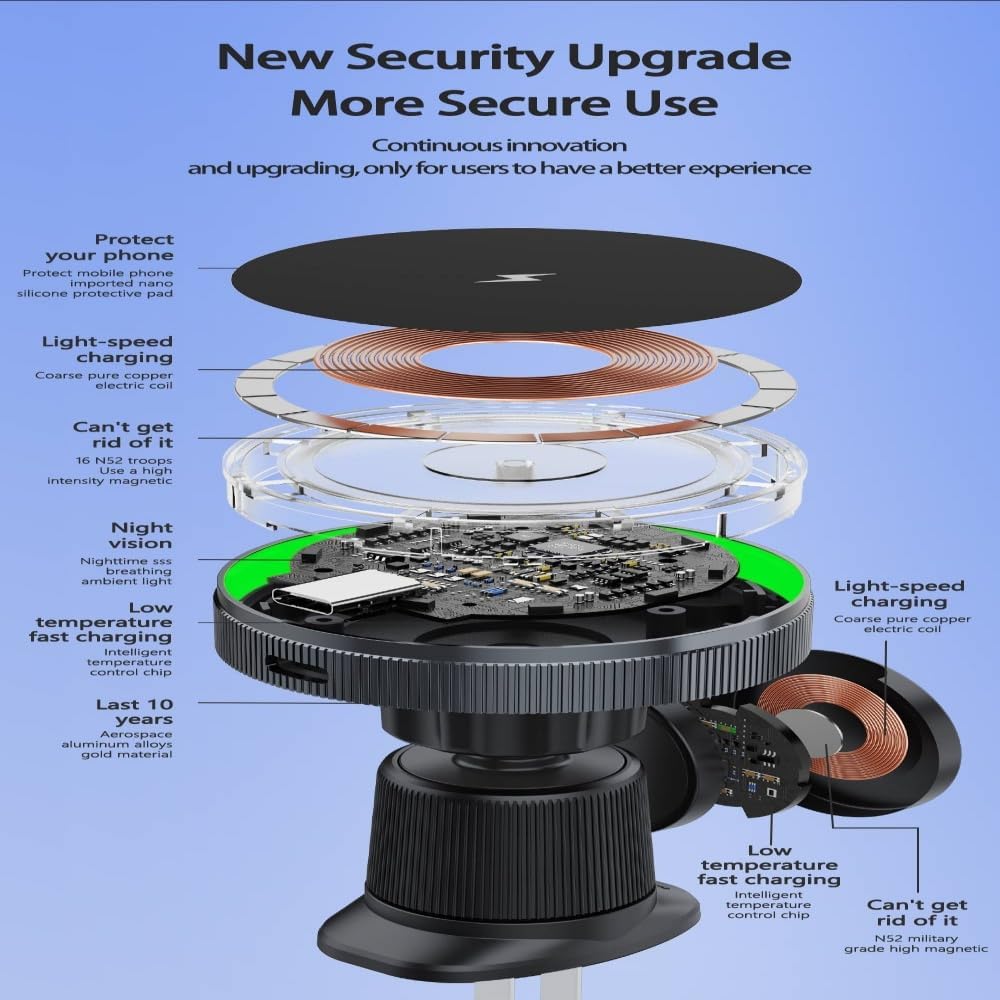 • 【Protection & Assistance】We place your safety above all. The car phone holder charger is equipped with integrated features to prevent overcharging, excessive heat, and short-circuits. Have peace of mind on the road with our 1-year exchange and committed customer support team. (Please note: An OC 3.0 car charger adapter is necessary for its operation.)