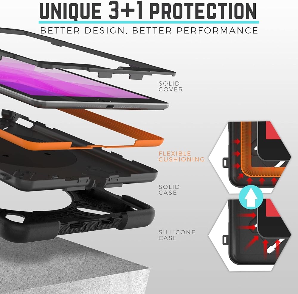 ✅【حماية ثلاثية فريدة من نوعها ضد الصدمات】بالمقارنة مع التصميم القديم، تم تصميم الجراب الفريد الممتص للصدمات الثلاثي مع مصد إضافي مصنوع من مواد عالية الأداء. يمتص المزيد من طاقة الصدمات بين الجهاز اللوحي والغطاء الخلفي الصلب.