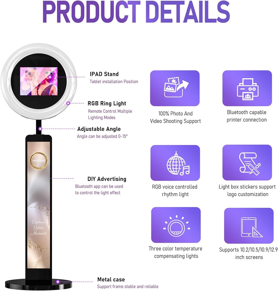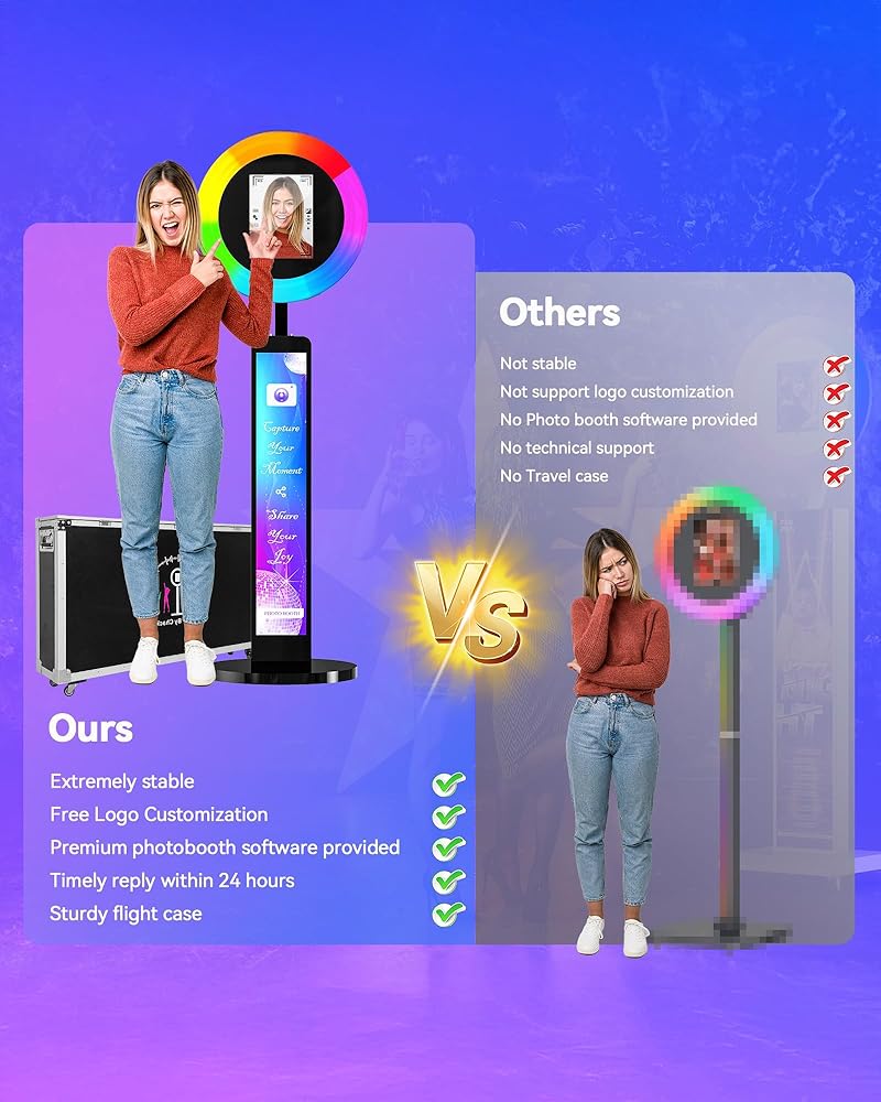 【كفاءة التغليف】 تم تصميم كشك صور iPad بتغليف خشبي، مما يضمن المتانة ومقاومة التشوه. مع العجلات الموجودة في الأسفل، تصبح عملية النقل مريحة دون عناء، سواء كنت تتنقل عبر السلالم أو تتحرك عبر الأسطح المستوية.