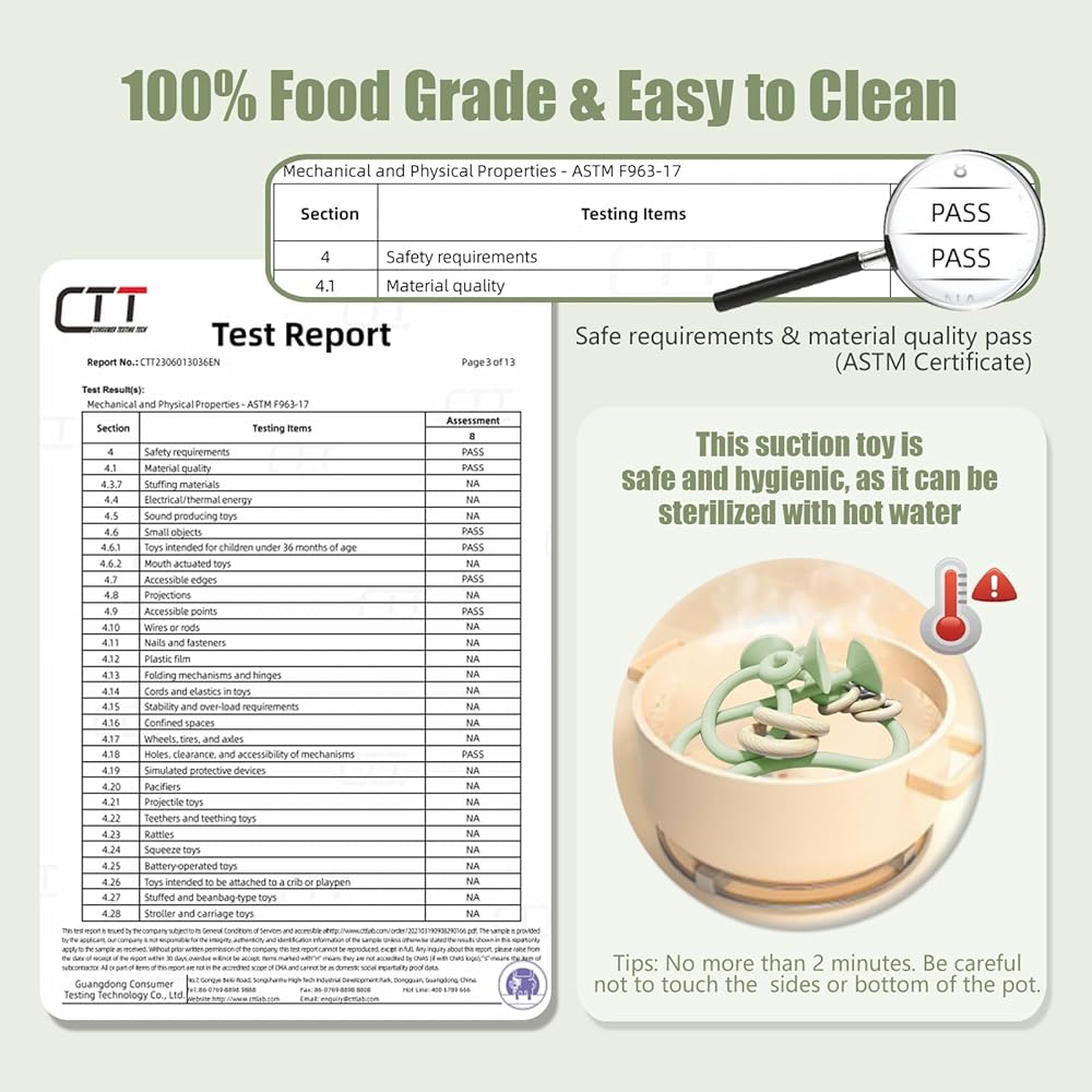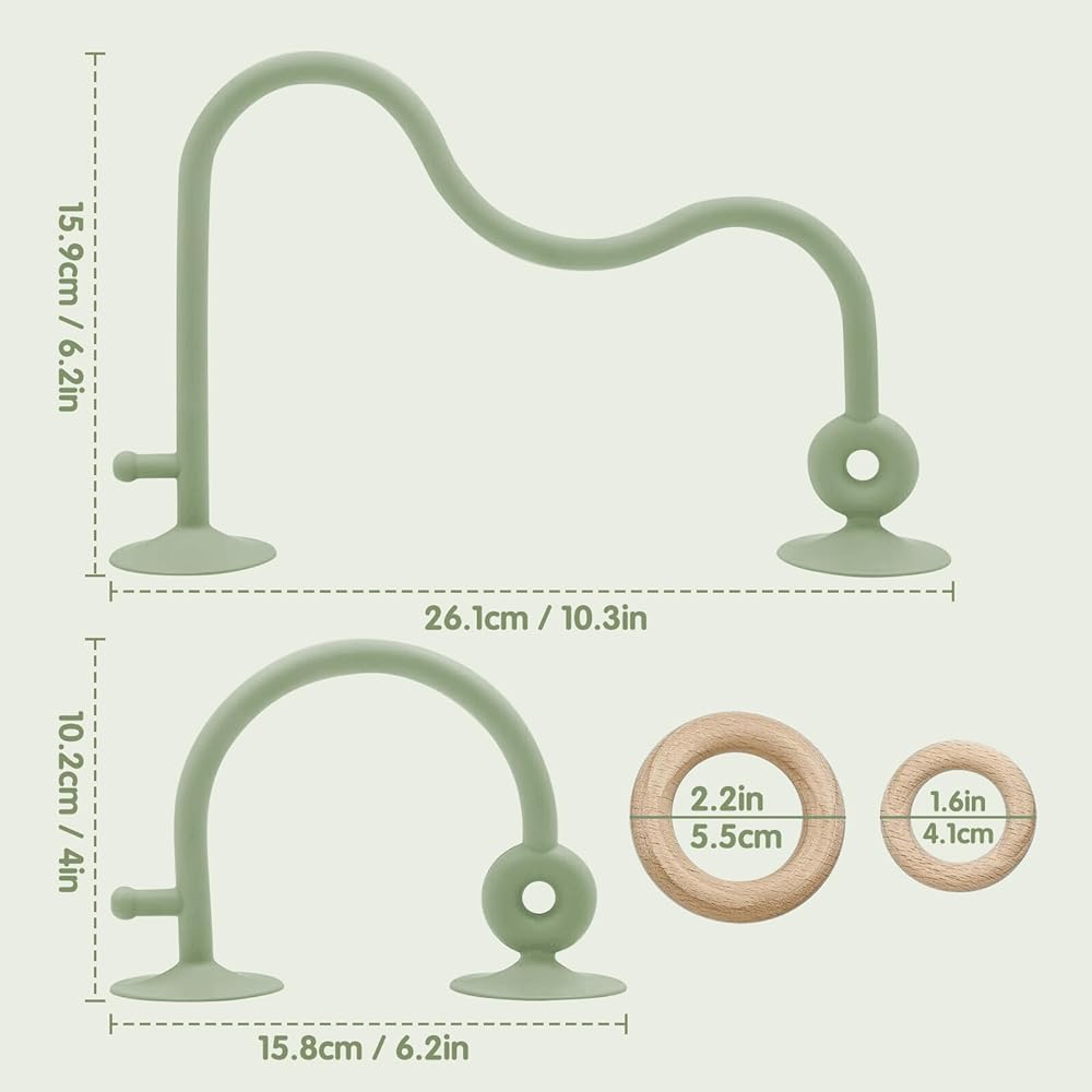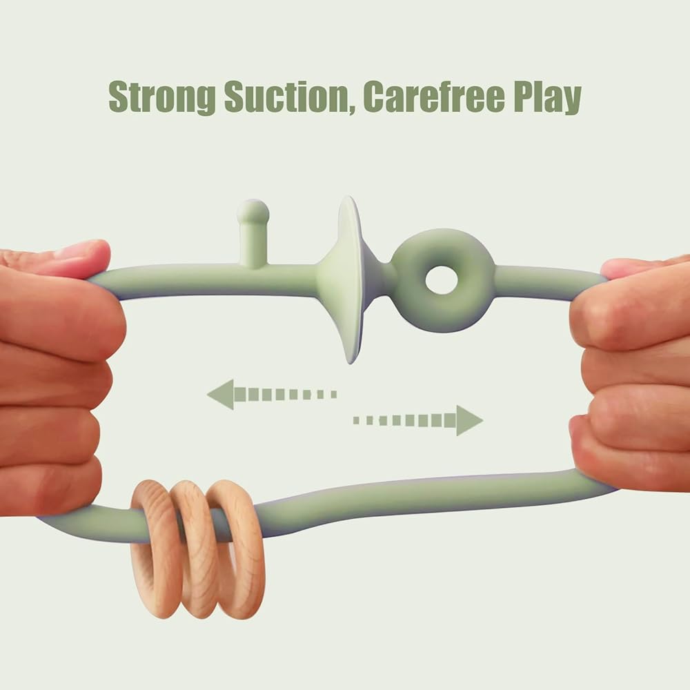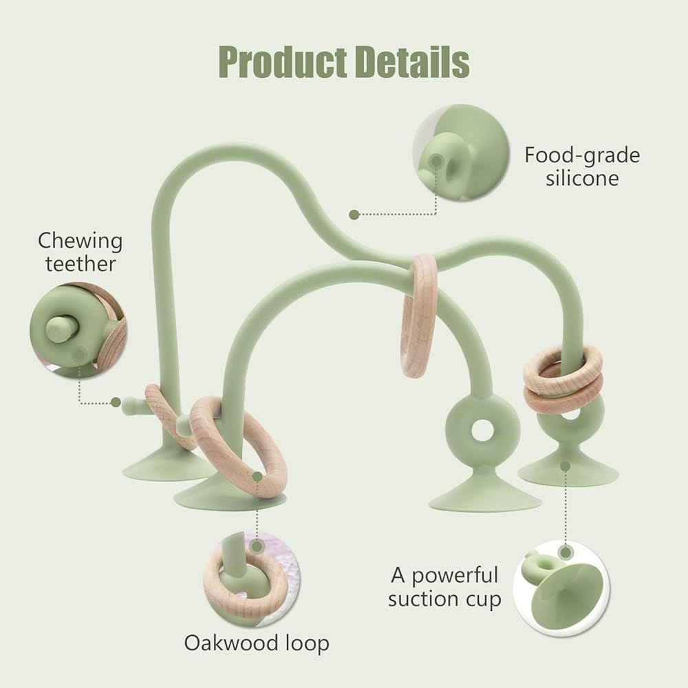 【Safe Material】Our high chair toys with suction cup is made of high-quality Food-Grade silicone and premium beech wood rings, ensuring safety and durability, BPA-Free and non-toxic. Safe for your baby during playtime and teething activities.