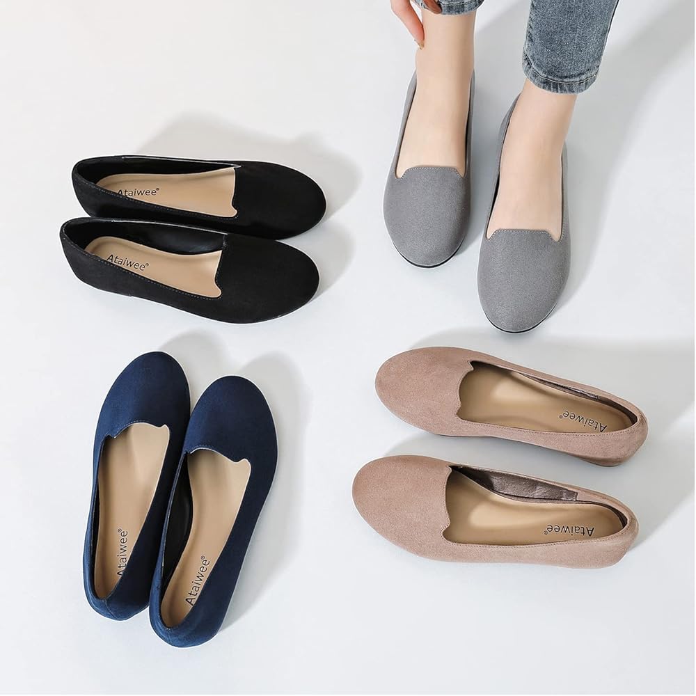 Ataiwee Women's Wide Width Flat Shoes - Black Round Toe Slip on Shoes.