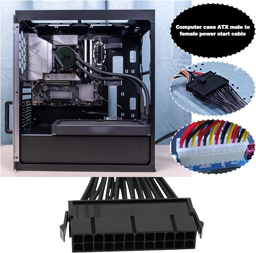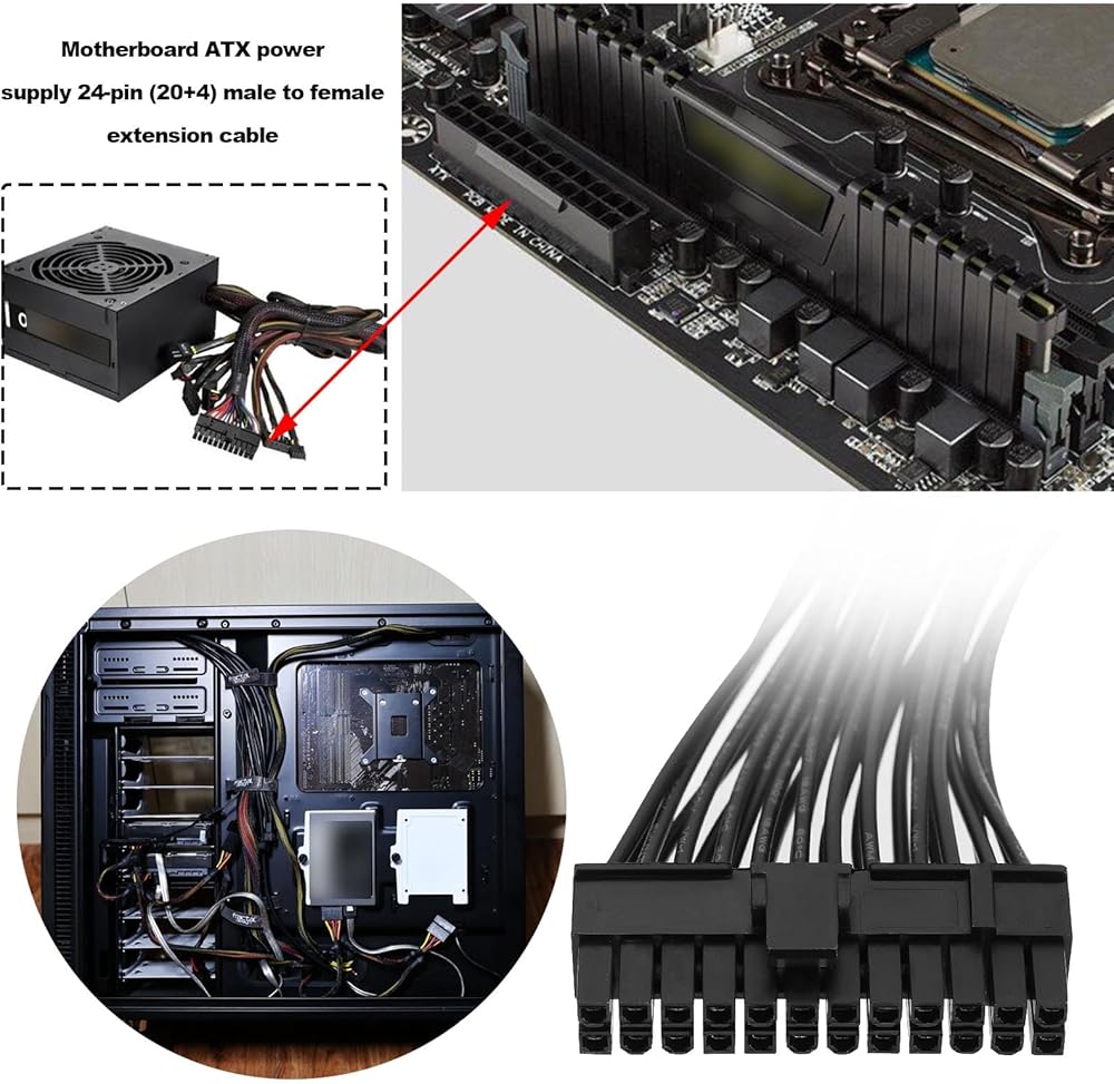 ما عليك سوى توصيل موصل كابل الطاقة الرئيسي المكون من 24 سنًا بالقابس الأنثى الموجود على وحدة تزويد الطاقة لديك، ثم توصيل الطرف الآخر باللوحة الأم، والتوصيل والتشغيل.