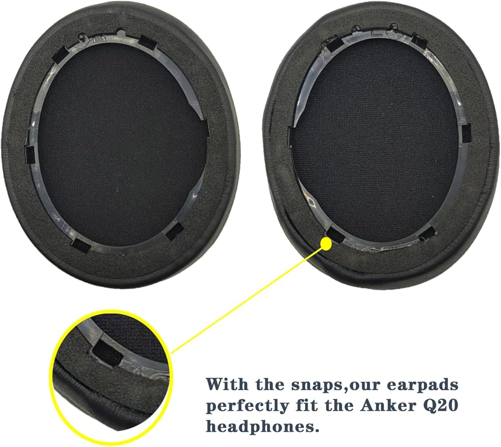 Replacement Ear Pads for Anker Soundcore Life Q20/Q20BT, Headphone Earpads Cushions, Headset ear covers earmuffs, Headphones Accessories with Soft Memory Foam and Protein Leather-Black
