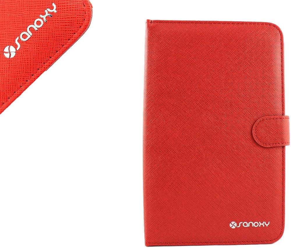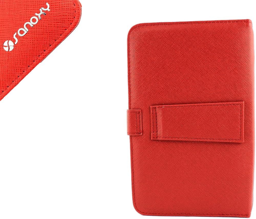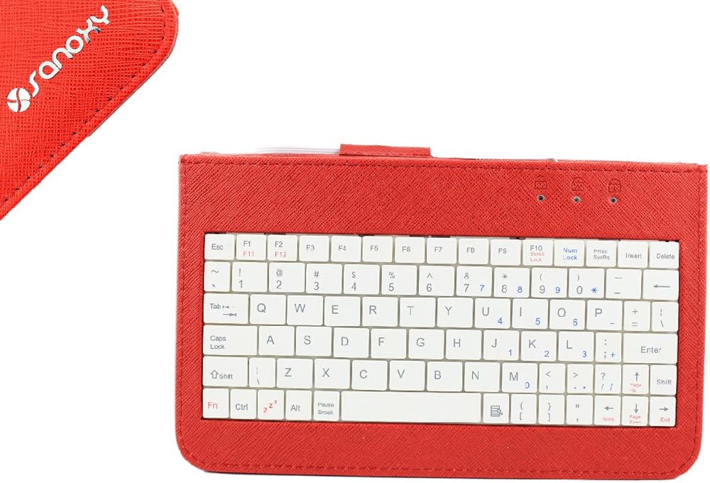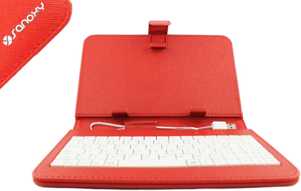 SANOXY® حافظة لوحة مفاتيح USB سلكية من جلد البولي يوريثان/حامل غطاء لأجهزة الكمبيوتر اللوحية ANDROID مقاس 9.7 بوصات/حافظة جلدية للكمبيوتر اللوحي العالمي مع حامل لوحة المفاتيح + MICRO OTG (9.7 بوصات USB 2.0 للكمبيوتر اللوحي أحمر)