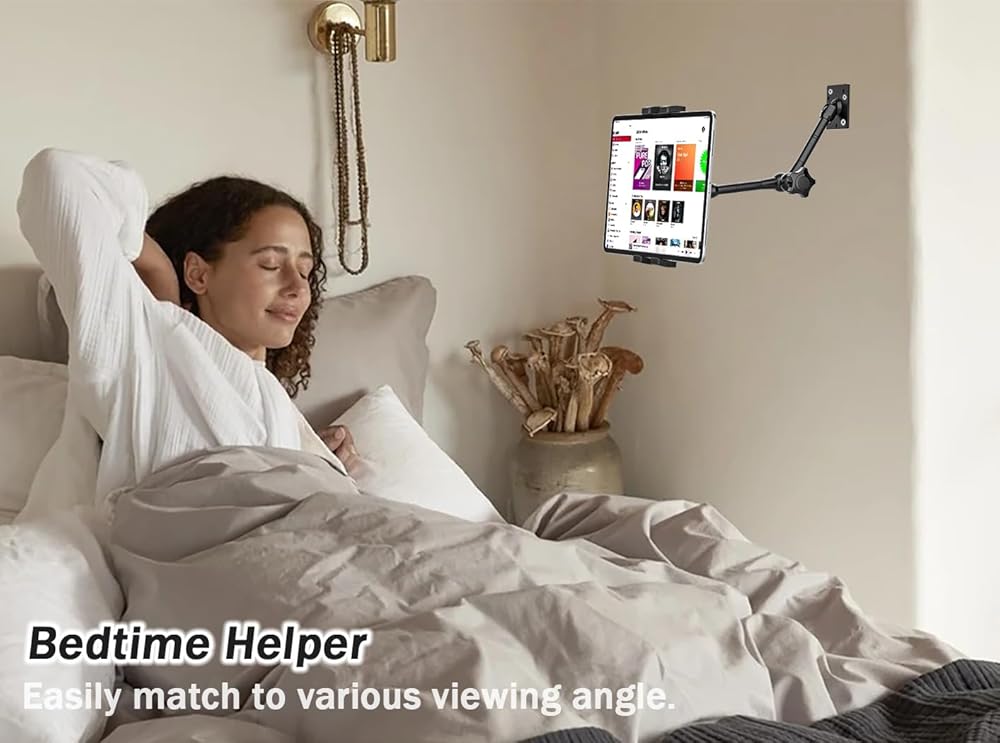 【توافق عالمي】حامل حائط معدني للكمبيوتر اللوحي يعمل مع جميع الأجهزة مقاس 4-12.9 بوصة، مع أو بدون حافظة بما في ذلك جهاز iPad Pro 11/ 12.9 بوصة الجديد 2022 / 2021، iPad 10.9، iPad Air 5، iPad Mini 6/ 5/ 4/ 3، iPad Pro 9.7/ 10.5، 2020 iPad Pro، iPad 5th/ 6th/ 7th/ 8th/ 9th/ 10th جيل، الملحقات، Galaxy Tab، Switch، iPhone 15 Pro Max، iPhone 14 Pro Max، 13 12 11 Pro Max، Xs والهواتف الذكية والأجهزة اللوحية الأخرى.
