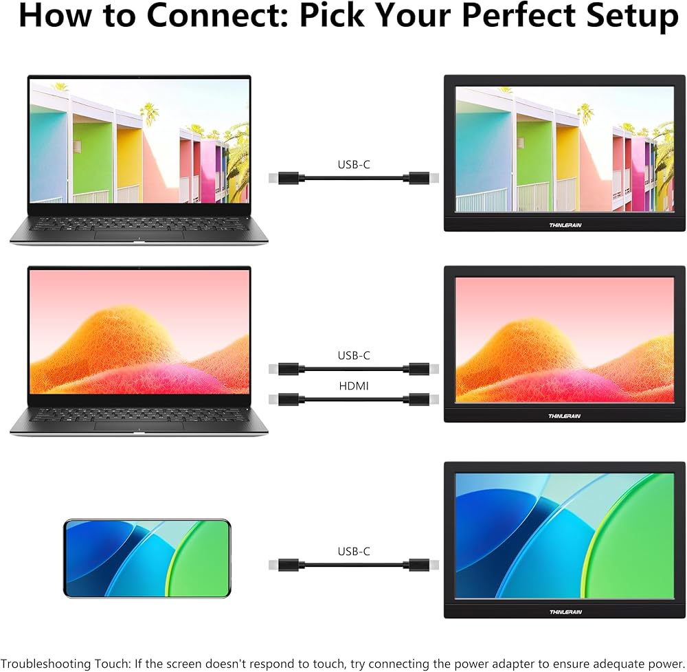 • خيارات اتصال متعددة الاستخدامات: مع منافذ USB-C وHDMI، توفر شاشة Thinlerain اتصالاً سلسًا بمجموعة متنوعة من الأجهزة، بما في ذلك أجهزة الكمبيوتر والهواتف ووحدات تحكم الألعاب. استخدمها كشاشة ثانية لتعزيز الإنتاجية أو كشاشة خارجية لأغراض الترفيه.