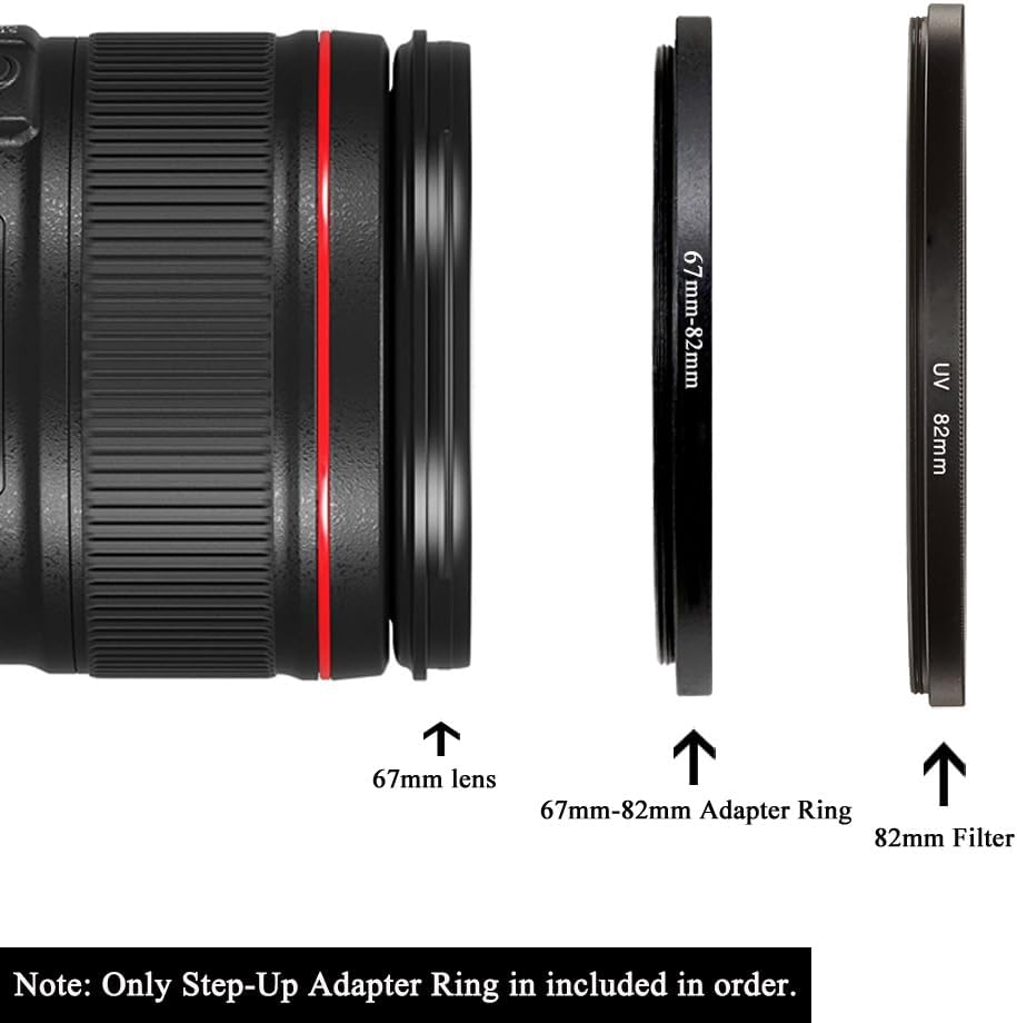 (1)67mm lens: Make sure your lens size is 67mm, and the filter size is 82mm, so choose the 67-82mm adapter ring, but not 82-67mm adapter ring.