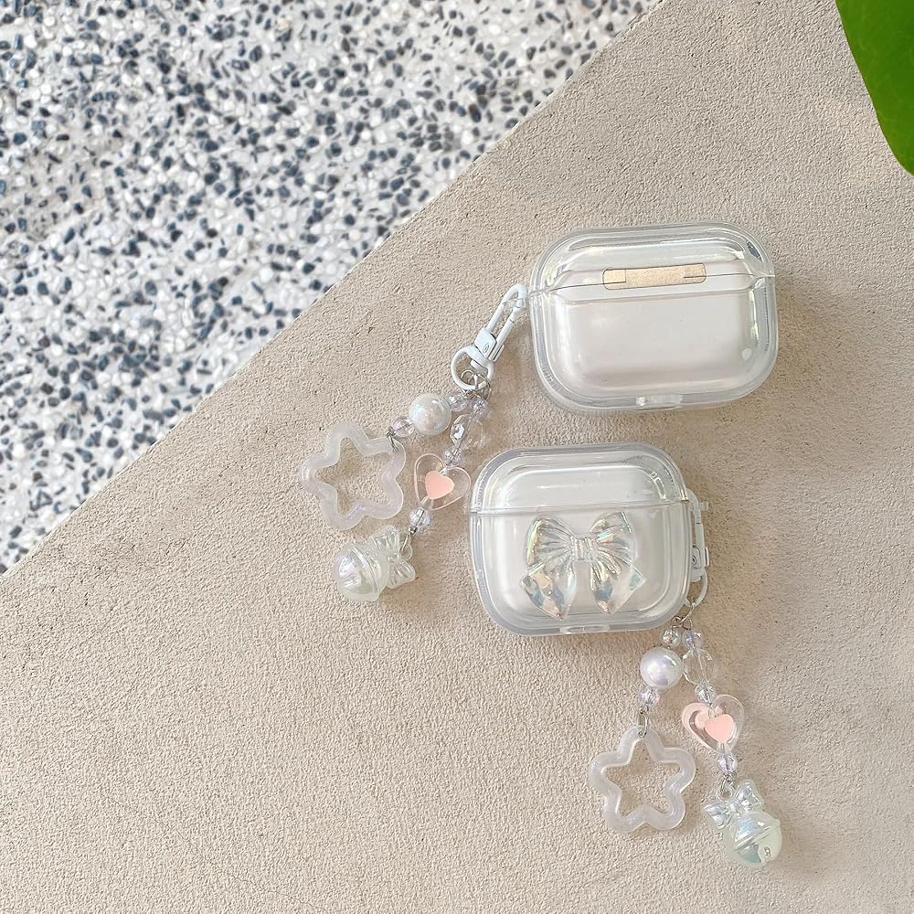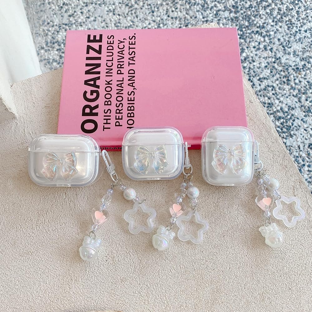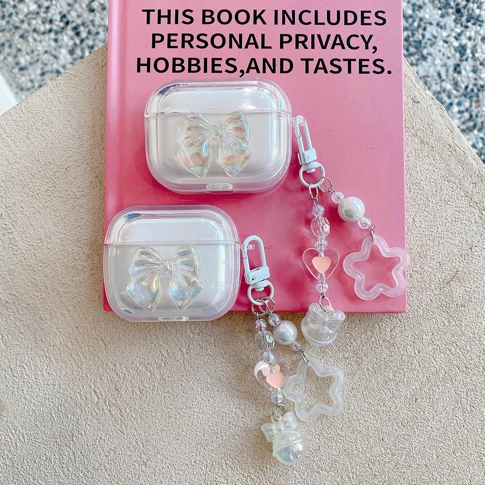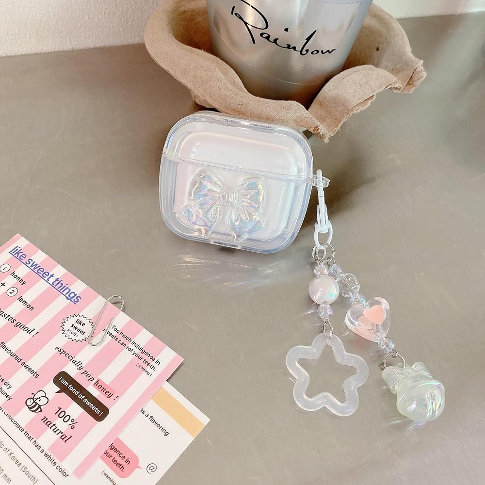Protect your precious AirPods with this adorable AirPods case featuring a cute bowknot design. The crystal clear case allows you to show off the sleek look of your AirPods while keeping them safe from scratches, bumps, and drops. The attached Cute keychain makes it easy to keep your AirPods close at hand, preventing you from misplacing them. This case is compatible with AirPods Pro 2nd Generation,ensuring a perfect fit. With its charming and functional design, this AirPods case is a must-have accessory for young AirPods users who want to protect their Airpods in style.