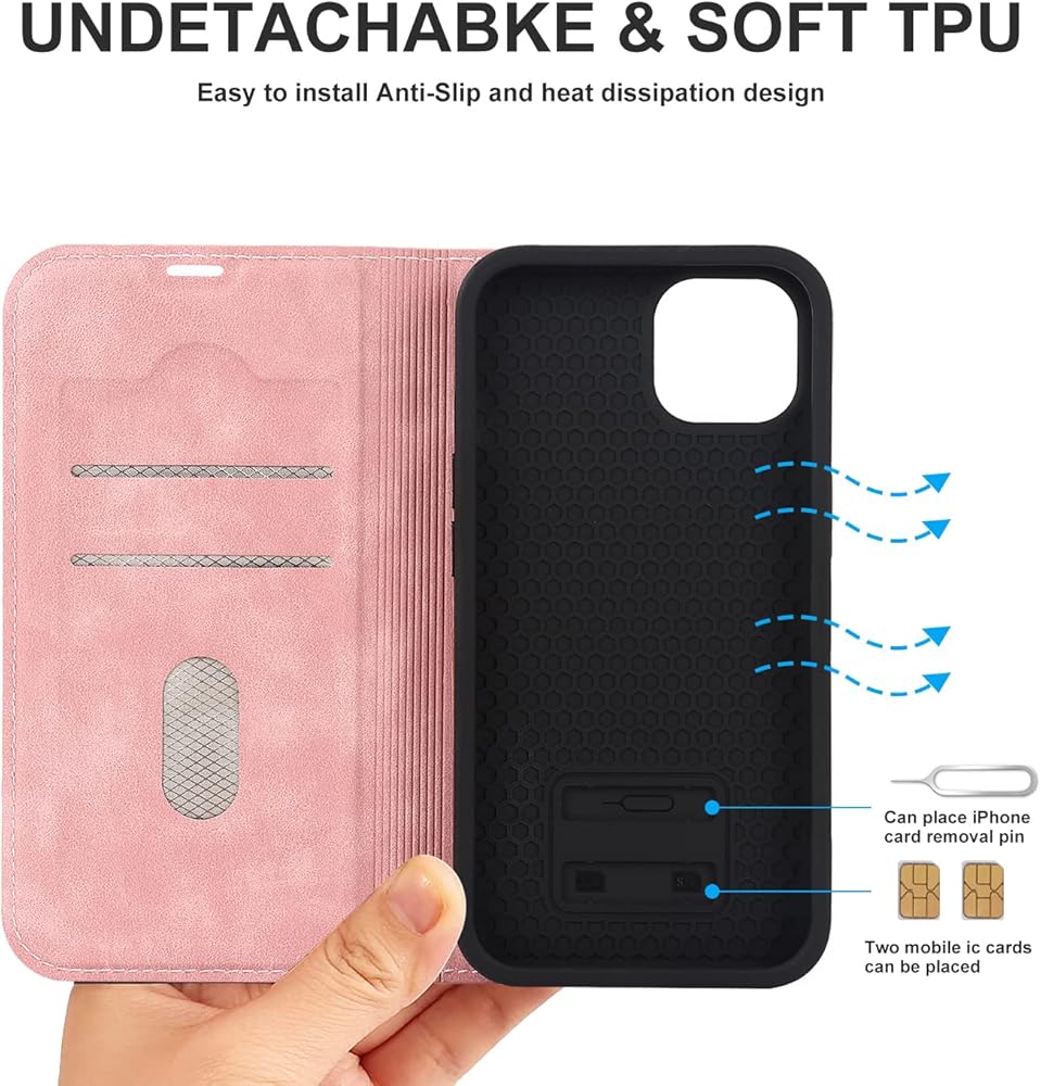 📍RFID Blocking Wallet Function: ✅The iPhone 13/14 flip case features 2 card slots to help you store ID card, credit cards and driving license, credit cards without having to take an extra wallet when going outside. ✅The case is designed with RFID shielding technology that can shield the signals to protect your cards information from unauthorized scanners.