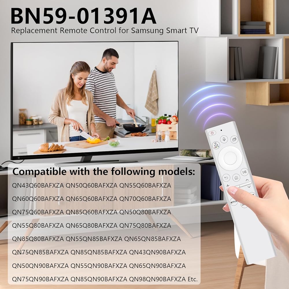 📺[متوافق مع سلسلة تلفزيون سامسونج] تم تصميم BN59-01385A/BN59-01385B لاستبدال جهاز التحكم عن بعد للتلفزيون الذكي Samsung للعمل بسلاسة مع معظم موديلات T 2018 إلى 2022، مثل سلسلة Samsung 6، 7 سلسلة، 8 سلسلة، QLED Q60T، Q70T ، سلسلة أجهزة التلفاز الذكية Q80T، RU8000، RU9000، TU8000، TU8300، NU8000، NU8500، Q60T، Q70T، Q80T، Q90T، Q900TS، Q950TS، LS07، LS05، Q50، Q60، Q70، Q80، Q900، Q7F، ، Q7C، سلسلة Q8F، Q9F.