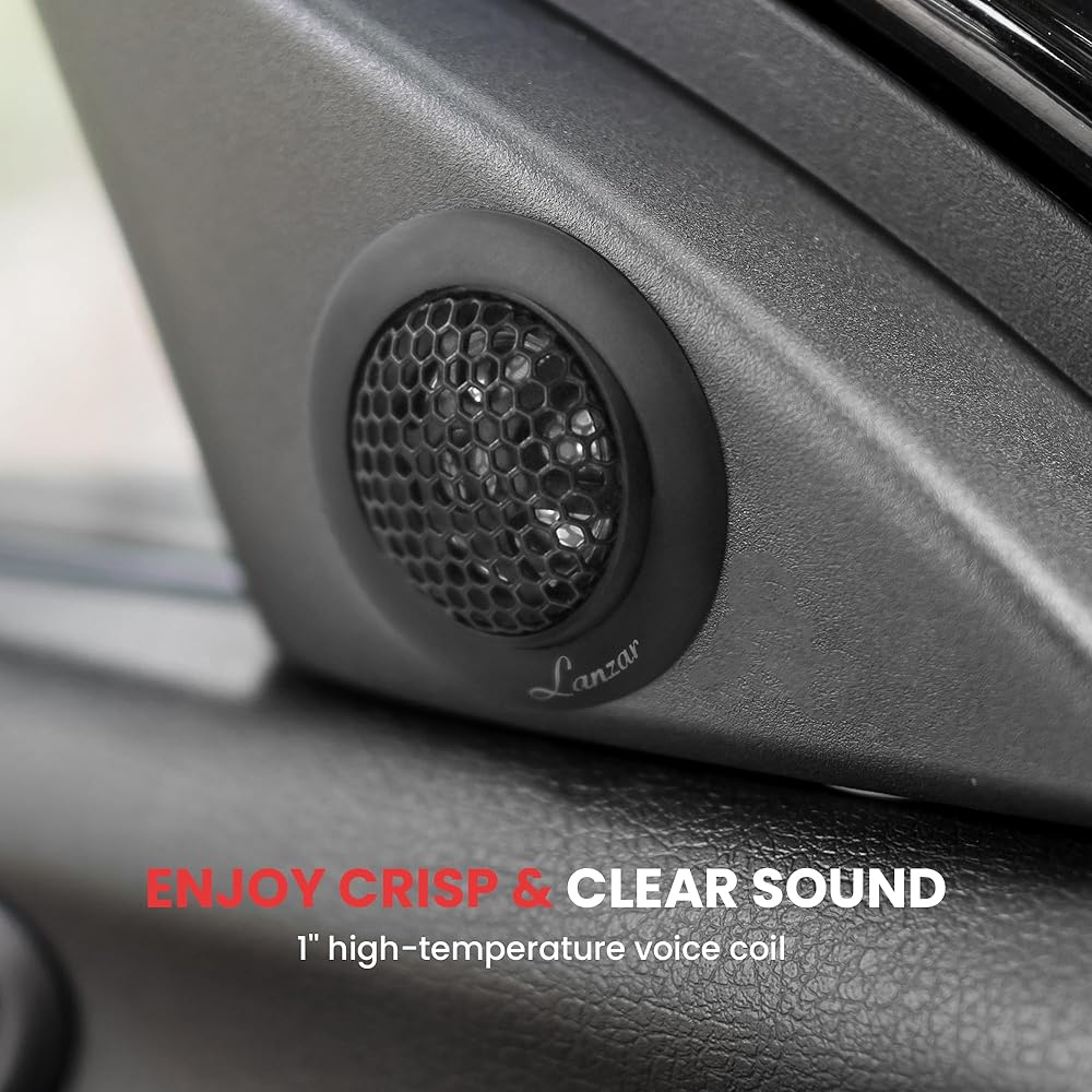 مكبرات صوت ستيريو عالمية للسيارة ثلاثية الاتجاهات من Lanzar - صوت سيارة ثلاثي الاتجاهات بقدرة 80 وات عالي الطاقة مع 4 أوم، ملف صوتي عالي الحرارة 1 بوصة، مغناطيس 25 أونصة - يناسب OEM القياسي، أسود (STCMP65)، مقاس واحد