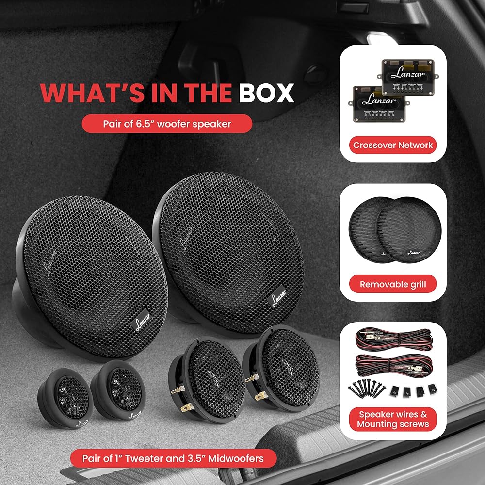 COMPLETE KIT: Comes complete with (2) 6.5” woofers, (2) 3.5” midwoofers, (2) tweeters, (2) crossover network, grilles, and all the necessary wires and mounting hardware for hassle-free installation