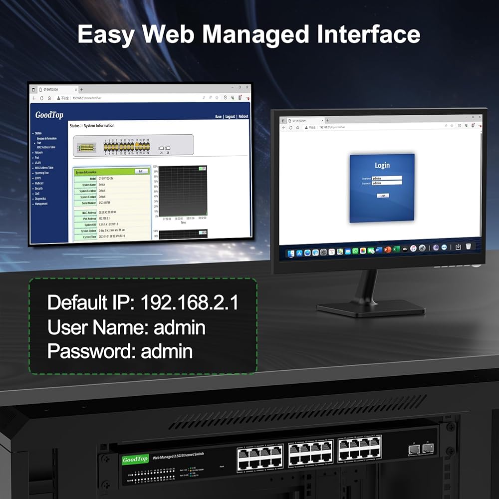 ►[وظائف الإدارة السهلة] يدعم المحول تسجيل الدخول عبر واجهة الويب وهناك بعض ميزات إدارة L2 الأساسية لإدارة المحول. مثل VLAN وLACP وQoS وIGMP Snooping وJumbo Frame وعنوان MAC وERPS وما إلى ذلك. يلبي متطلبات الحاجة إلى الاستخدام اليومي لوظائف الإدارة. (ملاحظة: يرجى ضبط عنوان IP للكمبيوتر عبر IPV4 أولاً قبل تسجيل الدخول في هذا المفتاح).