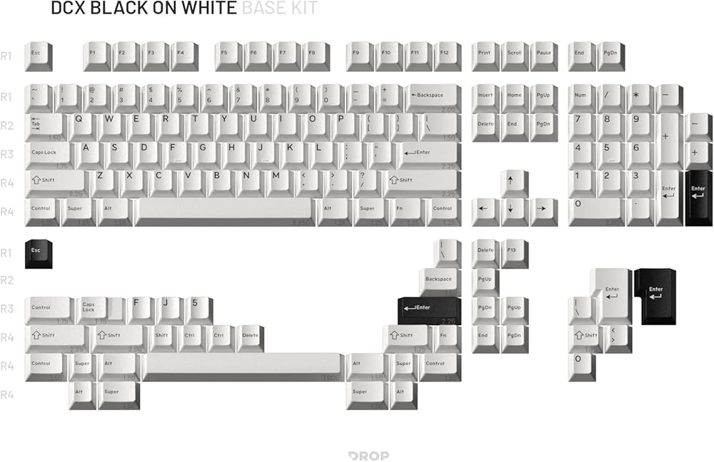 مجموعة أغطية مفاتيح DROP DCX باللون الأسود على الأبيض، Doubleshot ABS، لوحة مفاتيح طراز Cherry MX متوافقة مع 60%، 65%، 75%، TKL، WKL، الحجم الكامل، 1800 تخطيط والمزيد (أسود على أبيض)