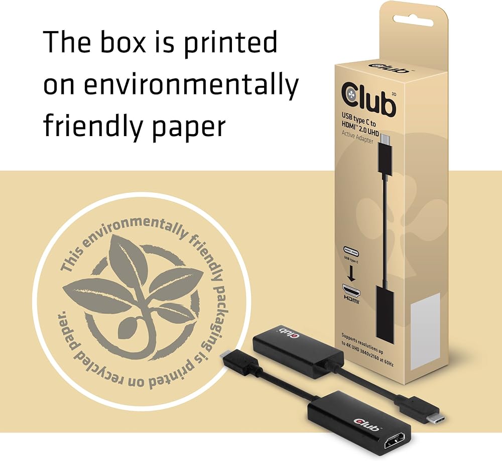 The Club 3D CAC-1504 is an active HDMI signal converter, USB-C to HDMI 2.0 Adapter easily converts a USB-C port(also know as type -C) into a HDMI output. The HDMI adapter is compact and highly portable.