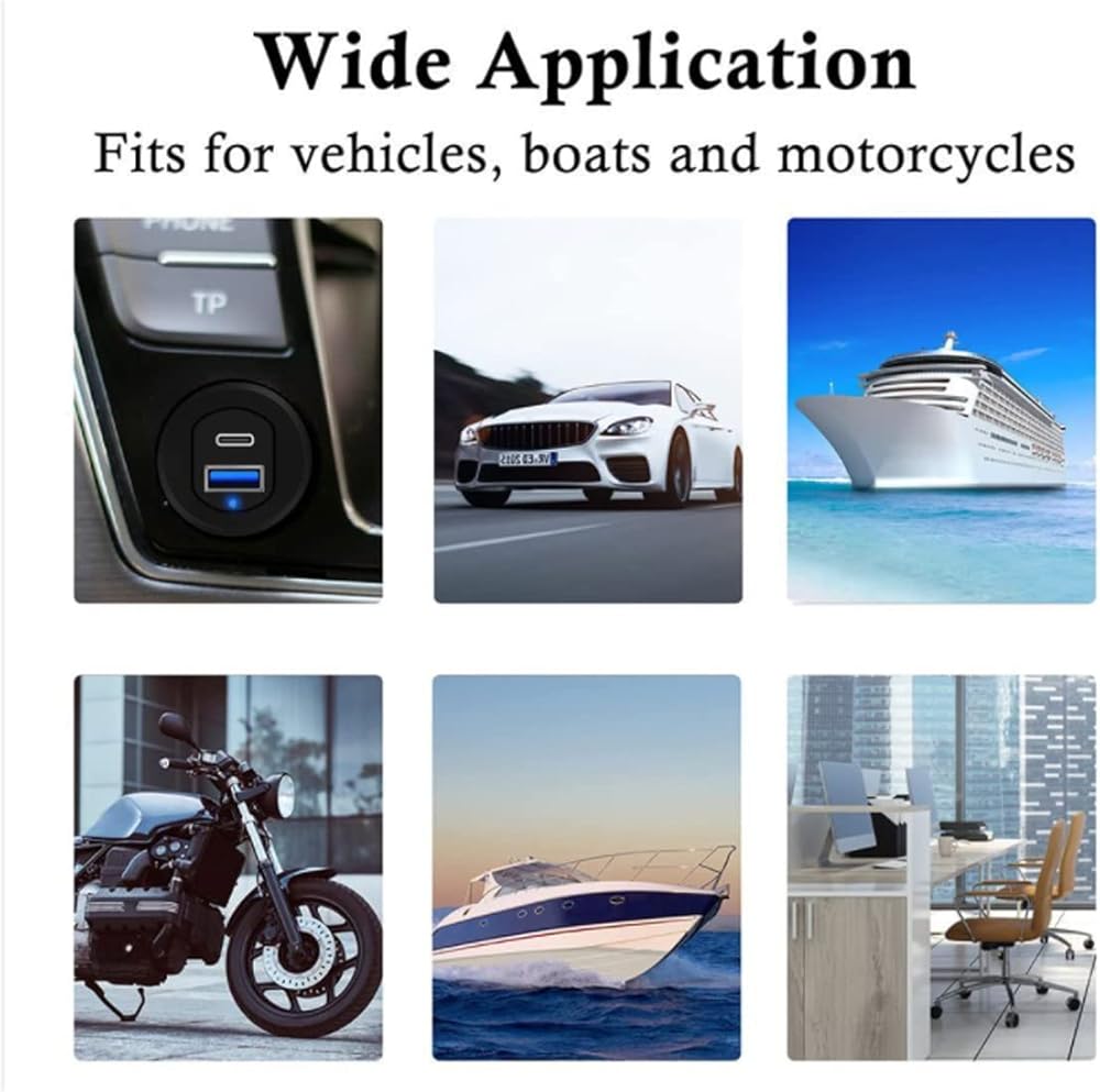 【يستخدم على نطاق واسع】يمكن استخدام كابل تثبيت السيارة USB C 3.0 فوق قاعدة لوحة أجهزة القياس الخاصة بالسيارة أو على لوحة أجهزة القياس الأخرى، وهو مصمم للسيارة ولكن يمكن استخدامه في أي تطبيق. مثل المركبات والبحرية والدراجات والقوارب وغيرها. المحرك، الخ.