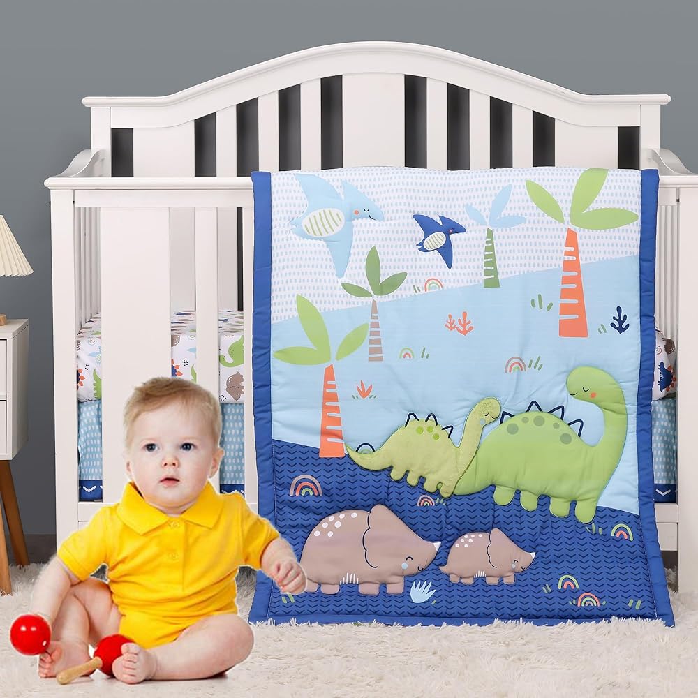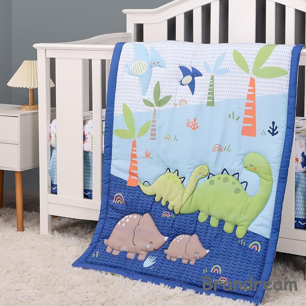 طقم سرير أطفال مكون من 3 قطع من سفاري يتضمن لحافًا واحدًا، وملاءة سرير ملائمة، وكشكشة واحدة من الغبار
