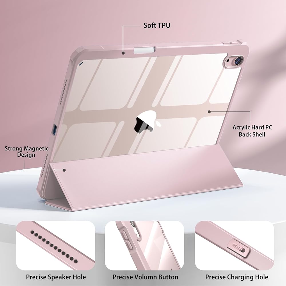• ☀ [النوم والاستيقاظ التلقائي] شريط مغناطيسي مدمج، يعمل جراب iPad air 11 الخاص بنا على تنشيط جهازك اللوحي تلقائيًا أو وضعه في وضع النوم عند فتح الغطاء وإغلاقه، مما يمكنه حماية عمر البطارية وإطالة عمره. سهولة الوصول إلى جميع الميزات وعناصر التحكم من خلال وضع الثقب الدقيق. (دعم معرف اللمس)