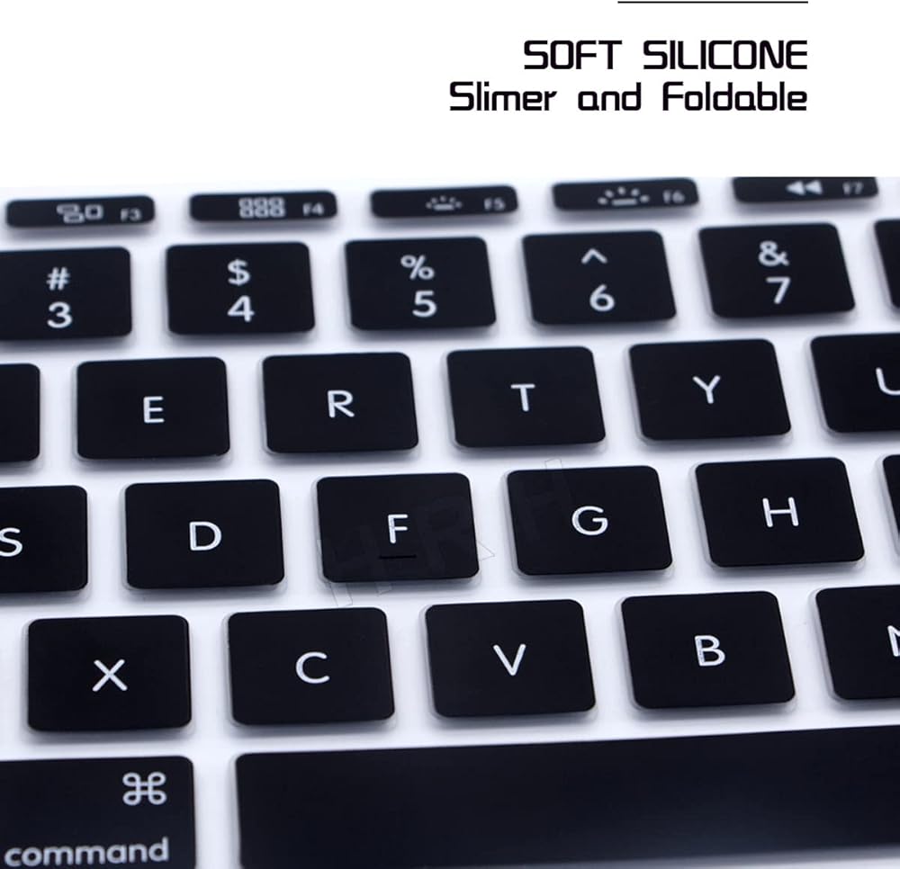 غطاء لوحة مفاتيح من السيليكون باللغة الإنجليزية من HRH لجهاز MacBook Air 11.6 بوصة لجهاز MacBook 11 بوصة A1370 A1465 USA/ANSI Layout Keyboard Portector - أسود
