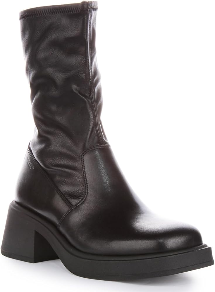 The square-toe Vagabond Shoemakers Dorah Leather Short Stretch Bootie is ideal for outdoors in the countryside winter outdoors or casual styling. The boots are crafted from cow leather upper and lining. A Tencel textile insole is highly breathable. S