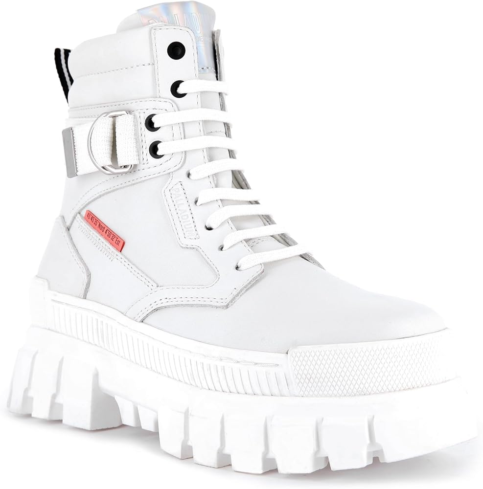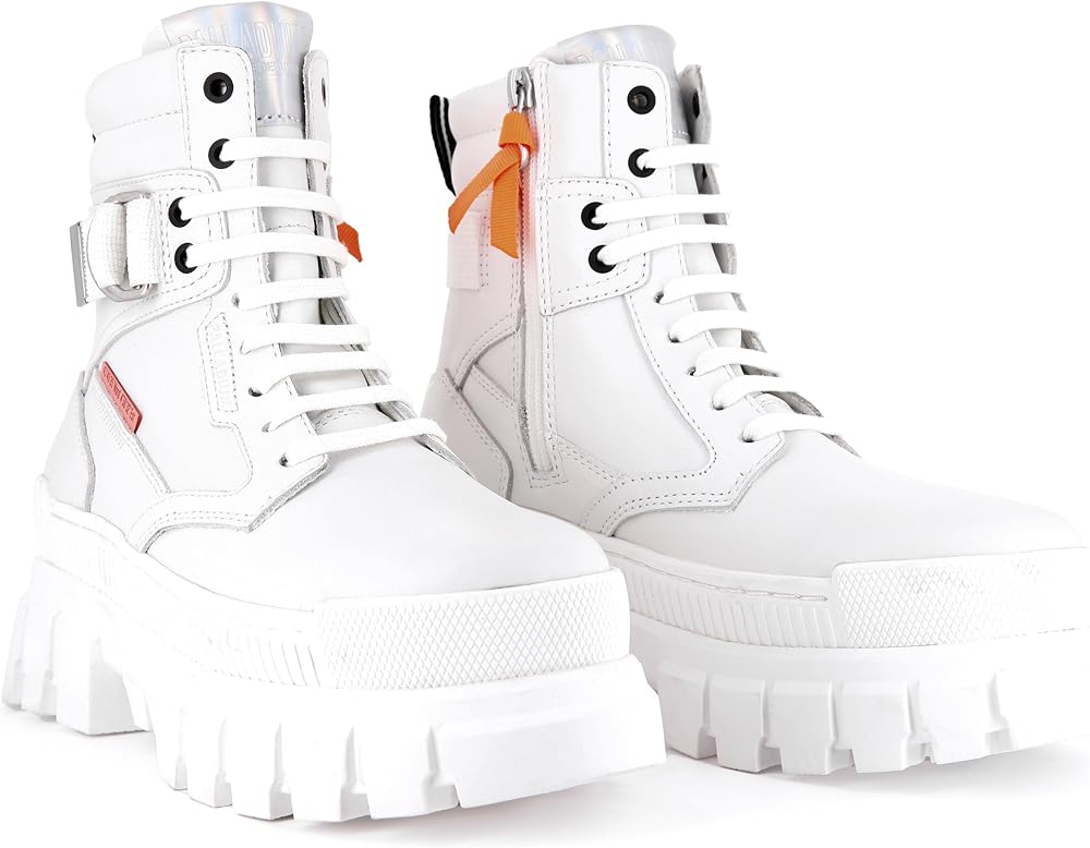The strong look of our Revolt design gets a makeover in the Sport Ranger, this new sneakerboot built on the same fashion-forward chunky platform sole. Along with all the edgy streetwear detailing that marks out Palladium footwear, including the GPS coordinates on the heel, this boot's leather upper has an adjustable strap that buckles around the ankle for a perfect fit.