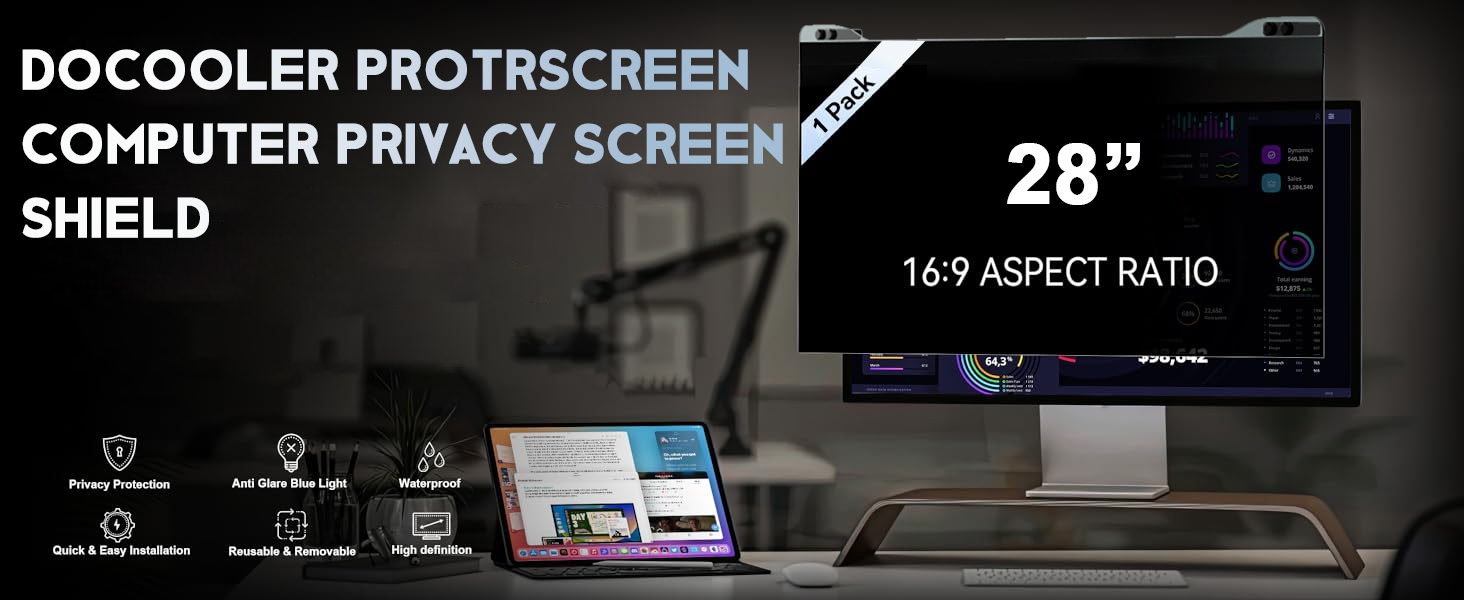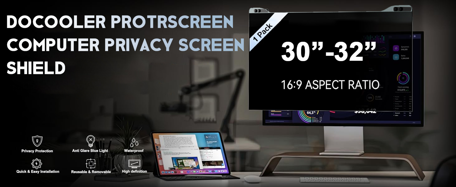 فلتر شاشة خصوصية الكمبيوتر من دوكولر، مرشح شاشة معلق متوافق مع شاشة كمبيوتر عريضة مع نسبة عرض إلى ارتفاع 16:9، واقي شاشة للخصوصية مضاد للوهج لشاشة 20-32 بوصة (اختياري بوصة)