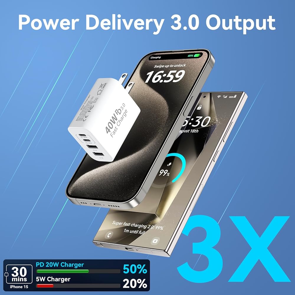 Output: 20W 5V/3A, 9V/2.22A, 12V/1.66A Total 40W Max