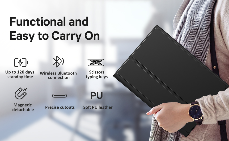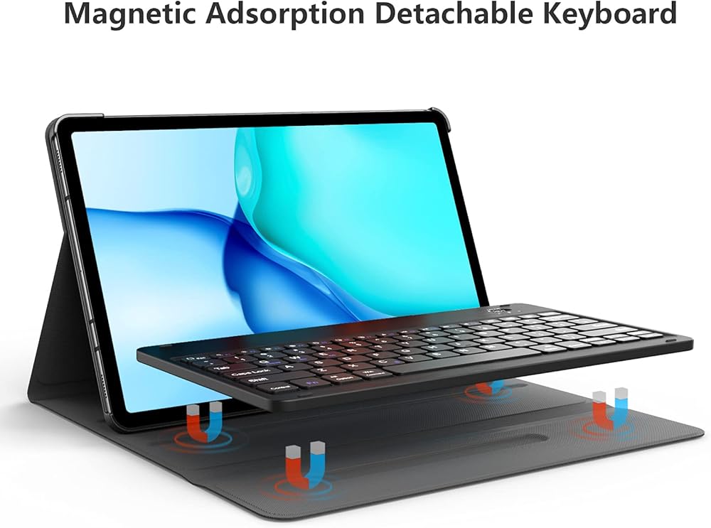 • [لوحة مفاتيح مغناطيسية قابلة للفصل] تسمح لوحة المفاتيح والحافظة المنفصلة بتبديل أوضاع الكمبيوتر المحمول والكمبيوتر اللوحي حسب الرغبة. تتيح لك أغطية المفاتيح ذات الحجم المناسب المصممة إمكانية الكتابة بشكل مريح على جهاز Galaxy Tab S7 Plus. تمت إضافة 15 مفتاح اختصار لتساعدك على العمل والدراسة بشكل أكثر كفاءة. حسنًا، ألا تحتاج إلى لوحة المفاتيح الآن؟ فقط قم بإزالته بسهولة ويتم الحصول على حقيبة جلدية خفيفة الوزن ومحمية بالكامل.