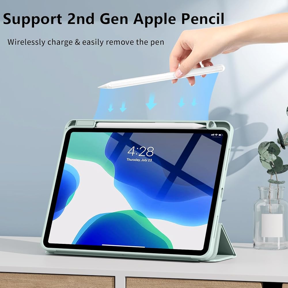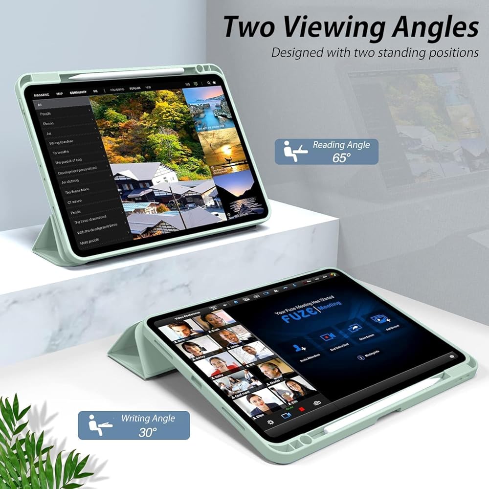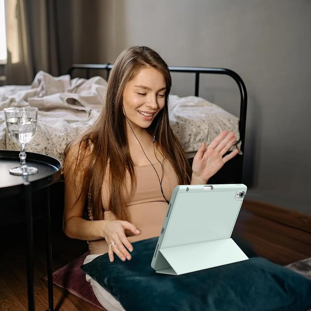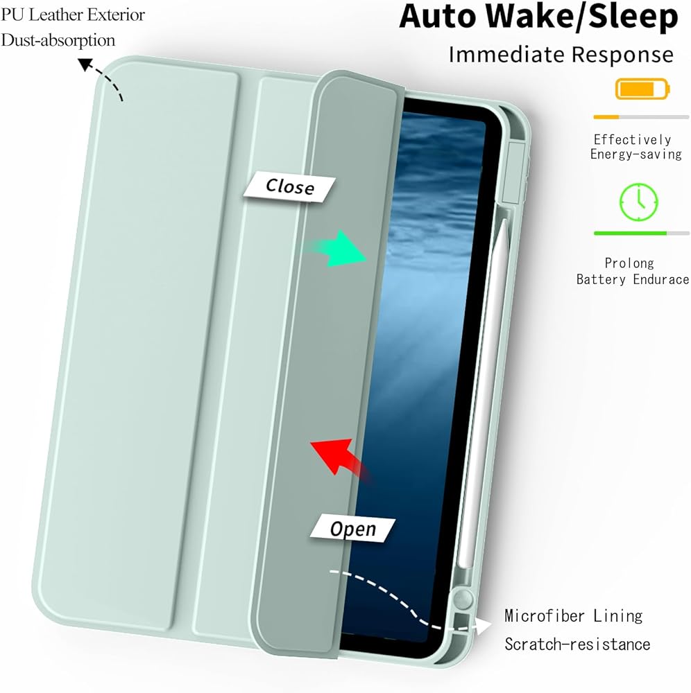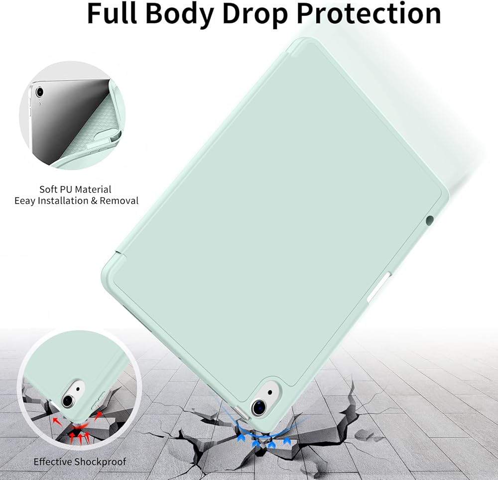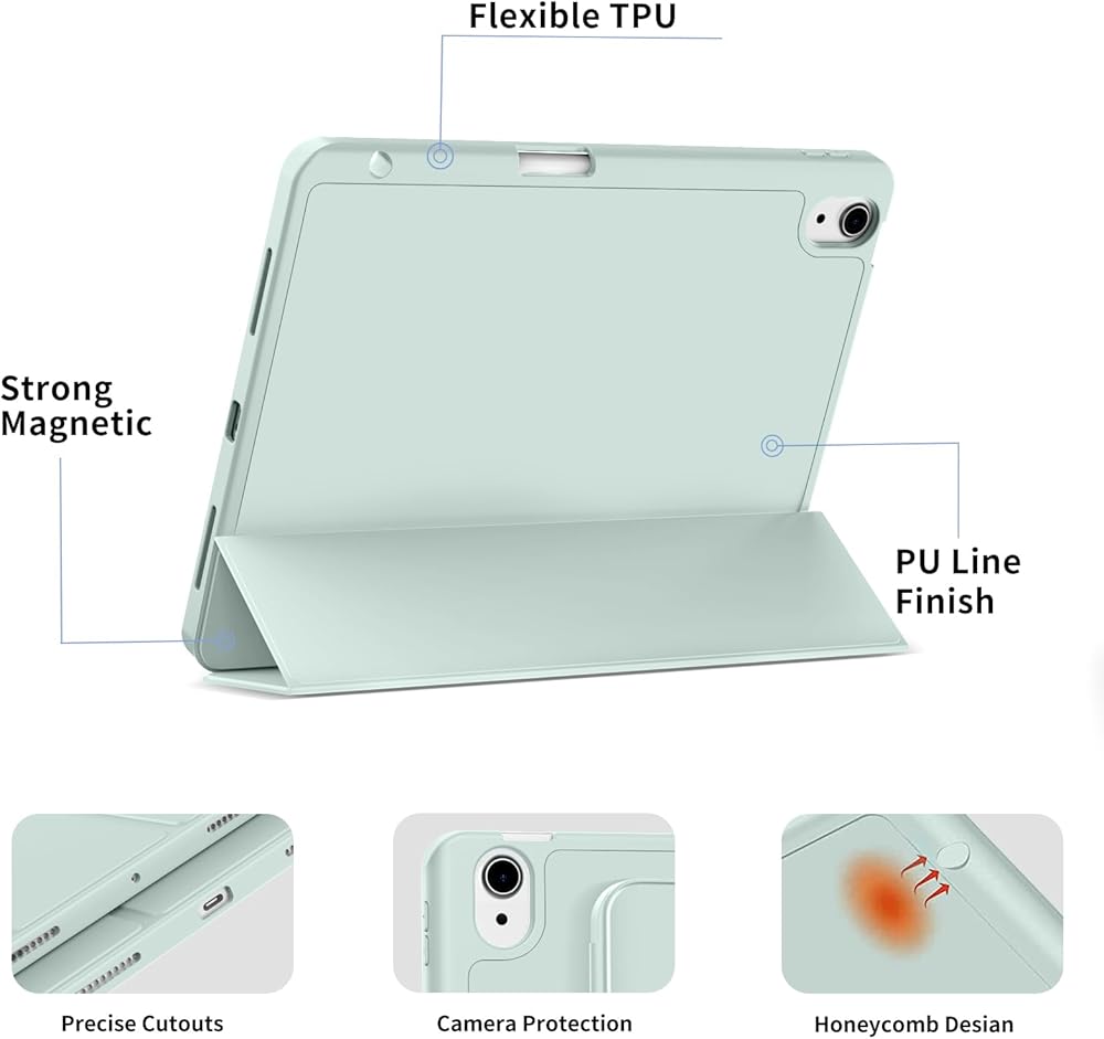 👝【النوم والاستيقاظ التلقائي】شريط مغناطيسي مدمج، يعمل جراب iPad air 11 الخاص بنا تلقائيًا على تنشيط أو وضع جهازك اللوحي لينام عند فتح الغطاء وإغلاقه، مما يمكنه حماية عمر البطارية وإطالة عمره. سهولة الوصول إلى جميع الميزات وعناصر التحكم من خلال موضع الثقب الدقيق. (دعم معرف اللمس)